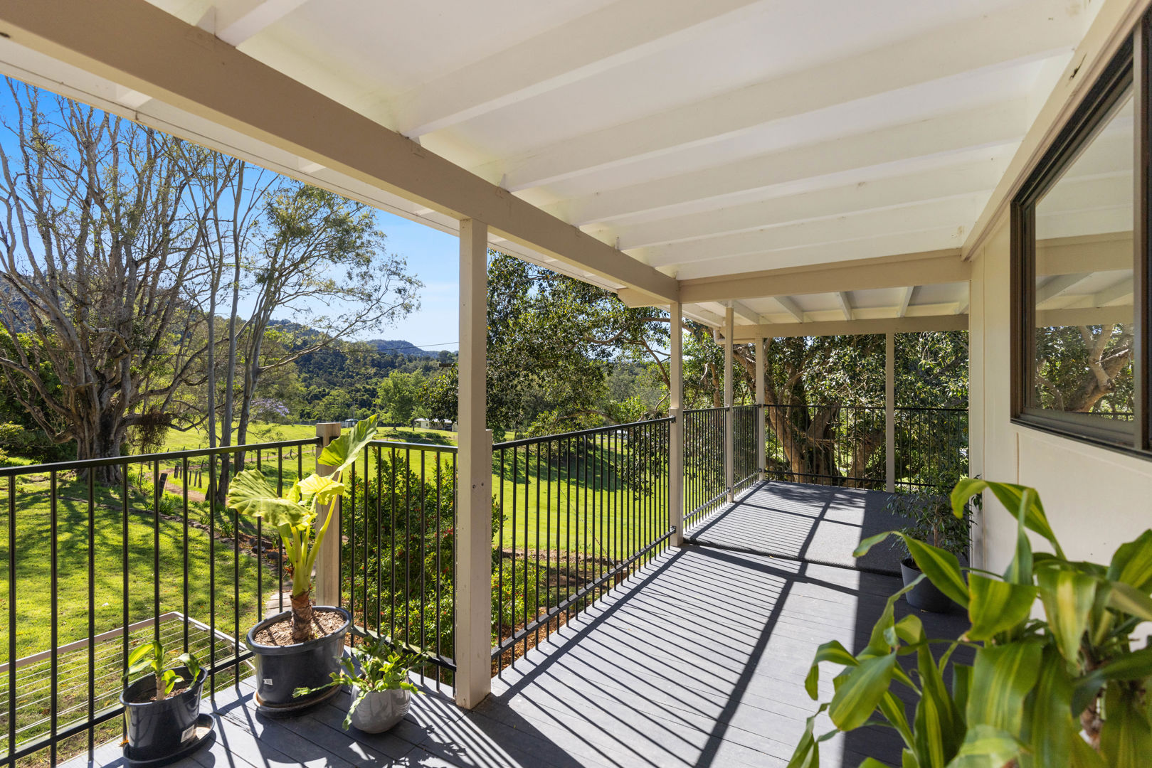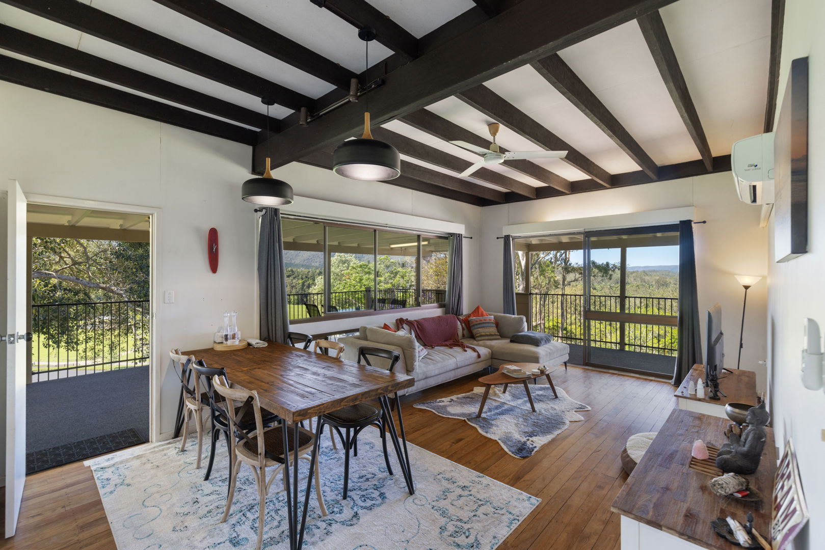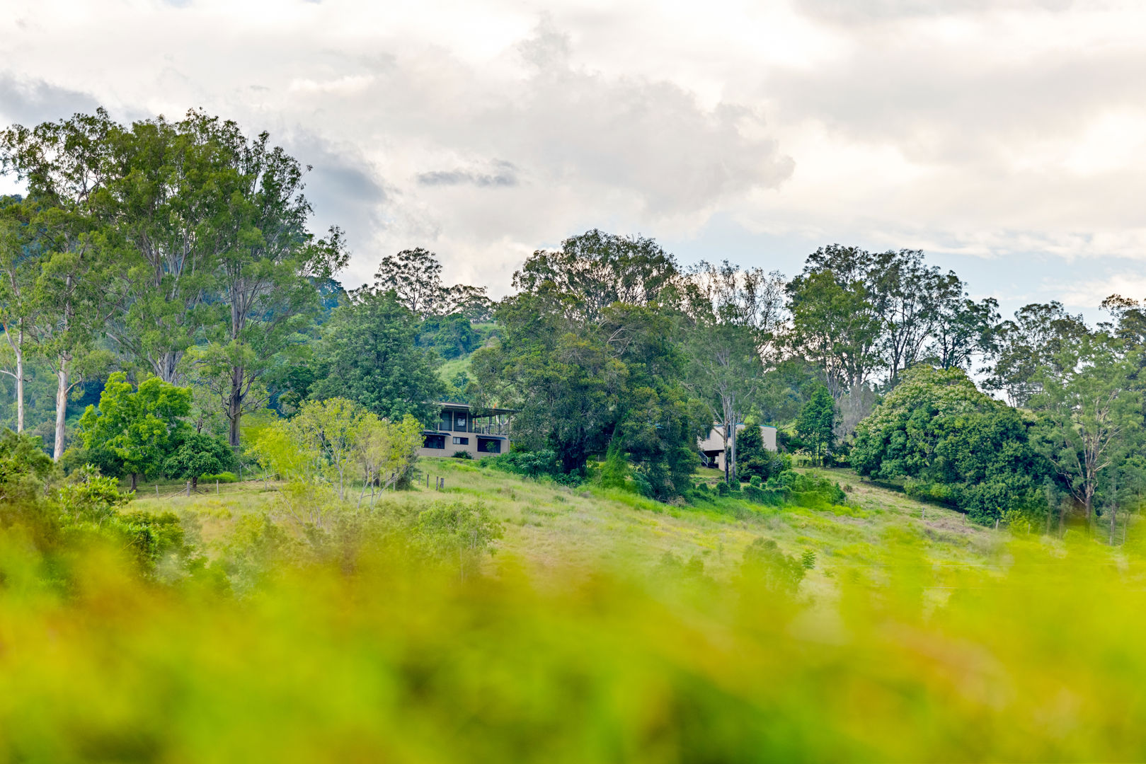 Tucked privately away and surrounded by nature, the main residence offers an elevated position with sweeping views across the property and down to the rainforest-fringed creek below.