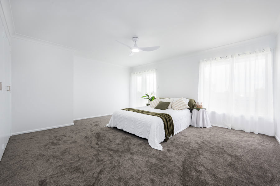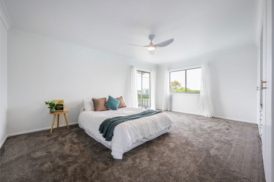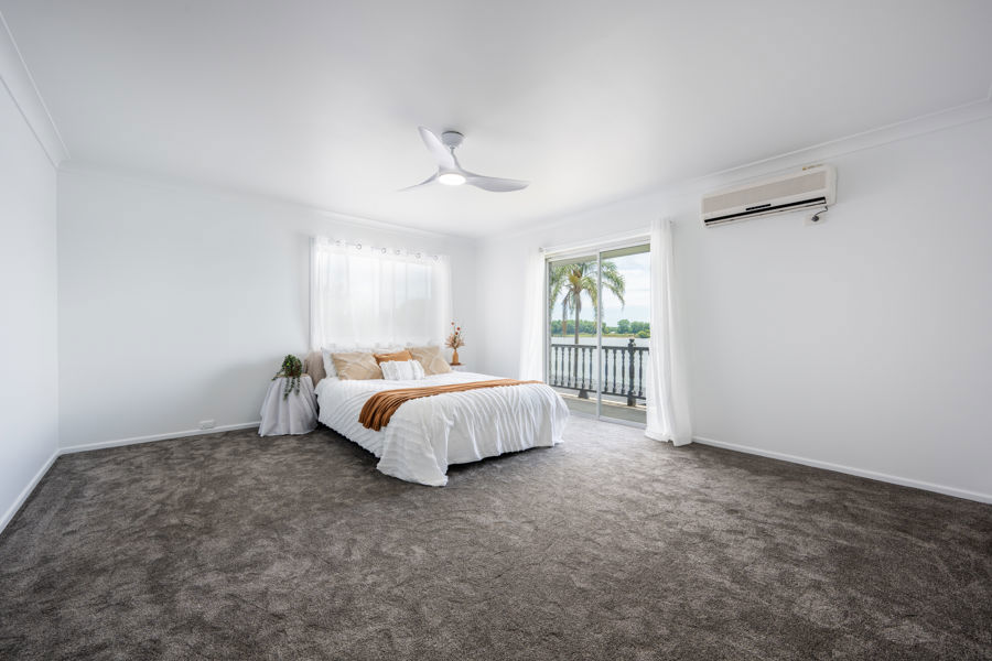 The upper level accommodates five well-proportioned bedrooms, each with built-in robes fitted with beauty stations and new ceiling fans. The main suite enjoys a private ensuite and direct access to the north-facing balcony, where river views stretch endlessly. A dedicated office adjoins the fourth bedroom, ideal for remote work or study.