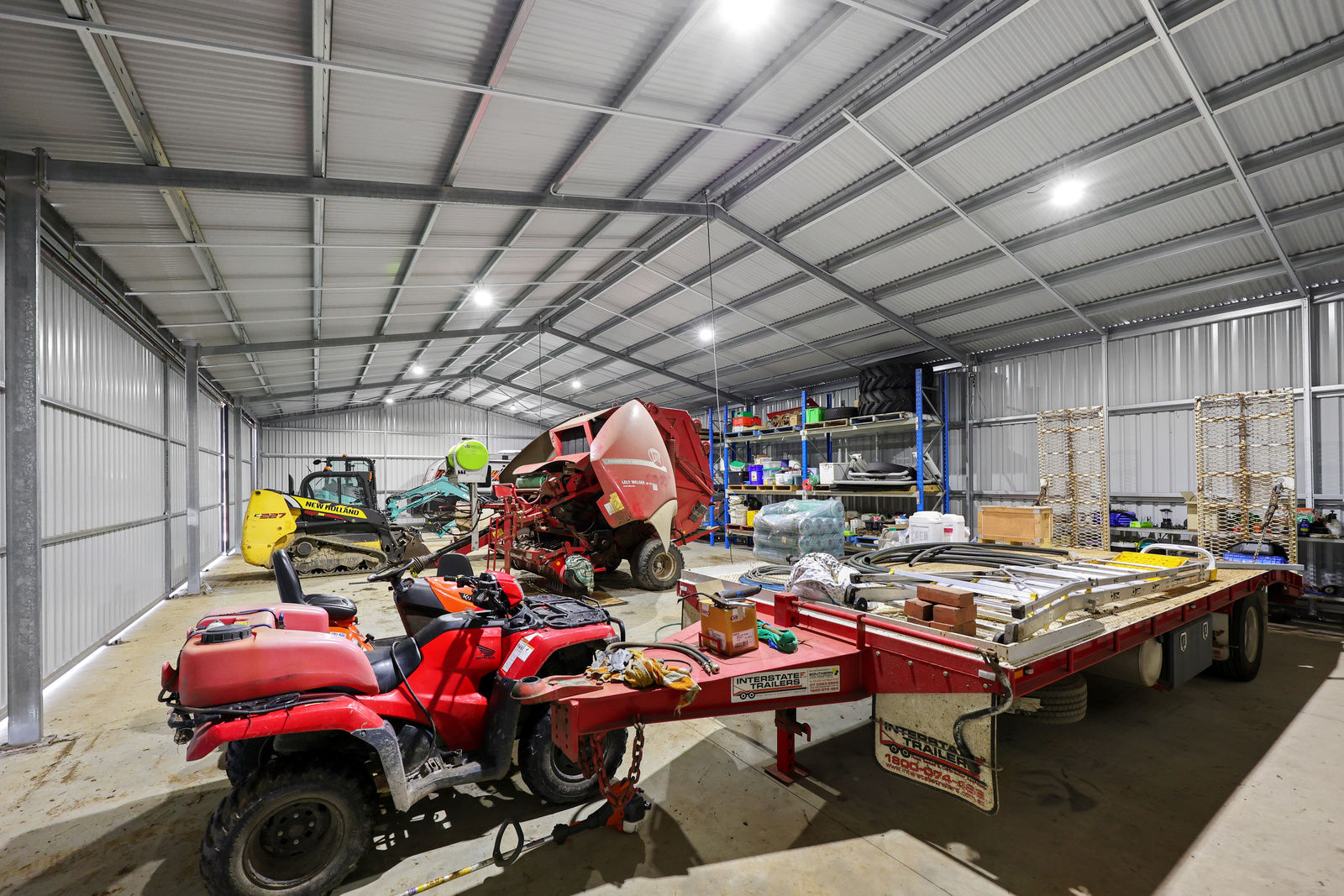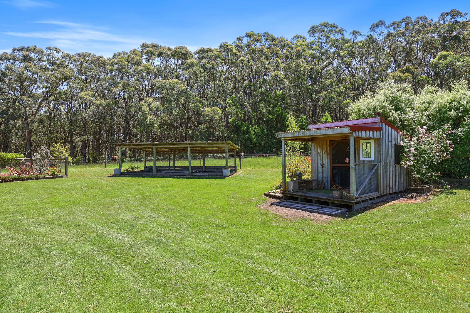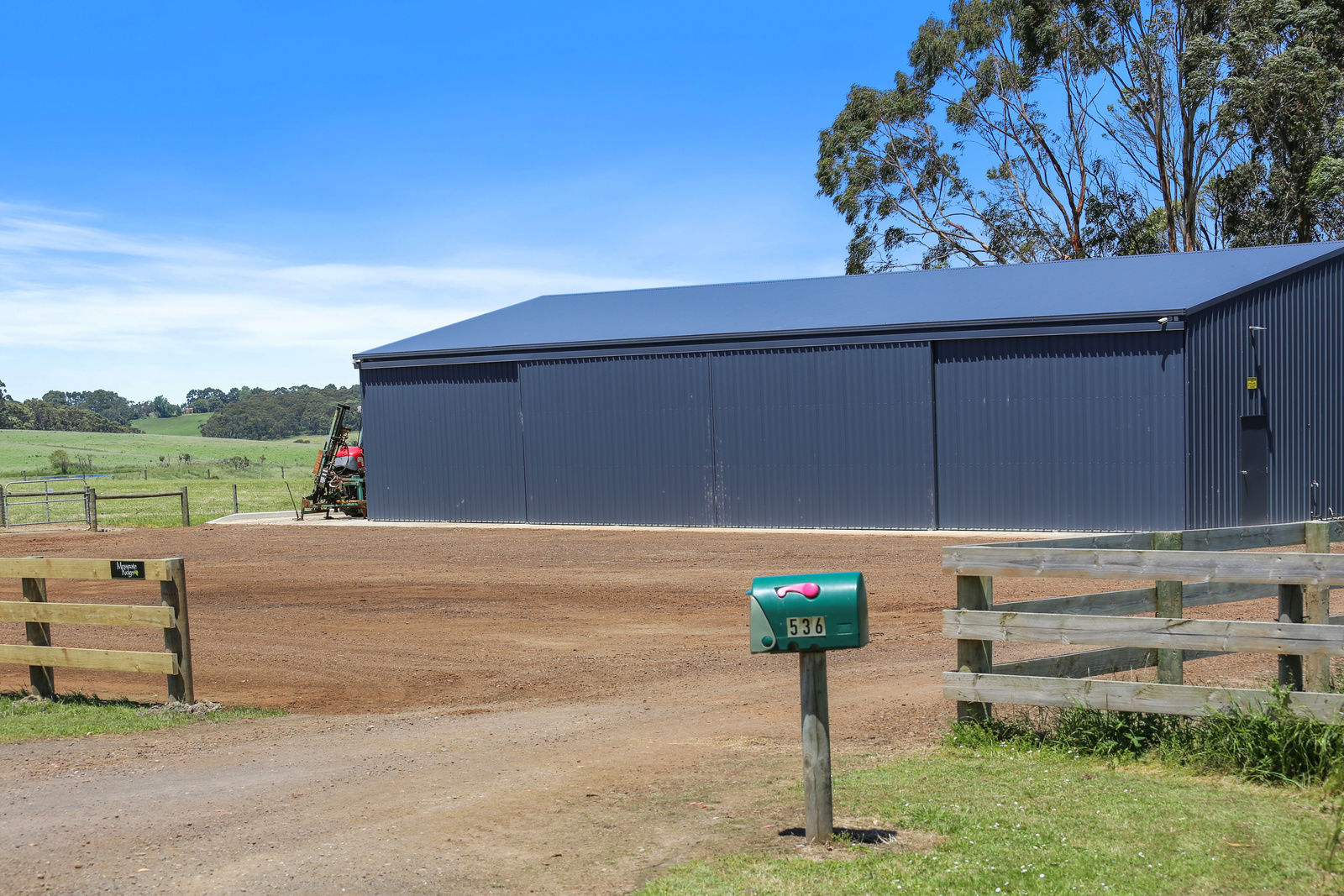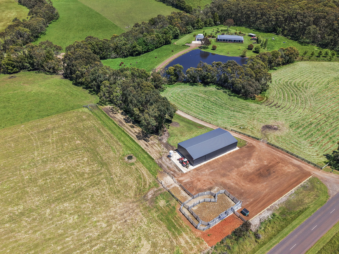 An impressive 51.4 acres of lush land, offers endless possibilities for those looking to embrace a self sufficient lifestyle with plenty of space for livestock, crops, or recreational activities. A secure, concrete floored, 4 bay, 3 phase power equipped machinery shed offers floor to ceiling storage, and ample space for farm equipment as well as recreational vehicles. The exterior wash bay is serviced by an extension of the shed's concrete floor. A large gravelled area ensures machinery is able to be utilised year round, and provides excellent access for trucks when attending to pick up animals from the steel cattle yards.