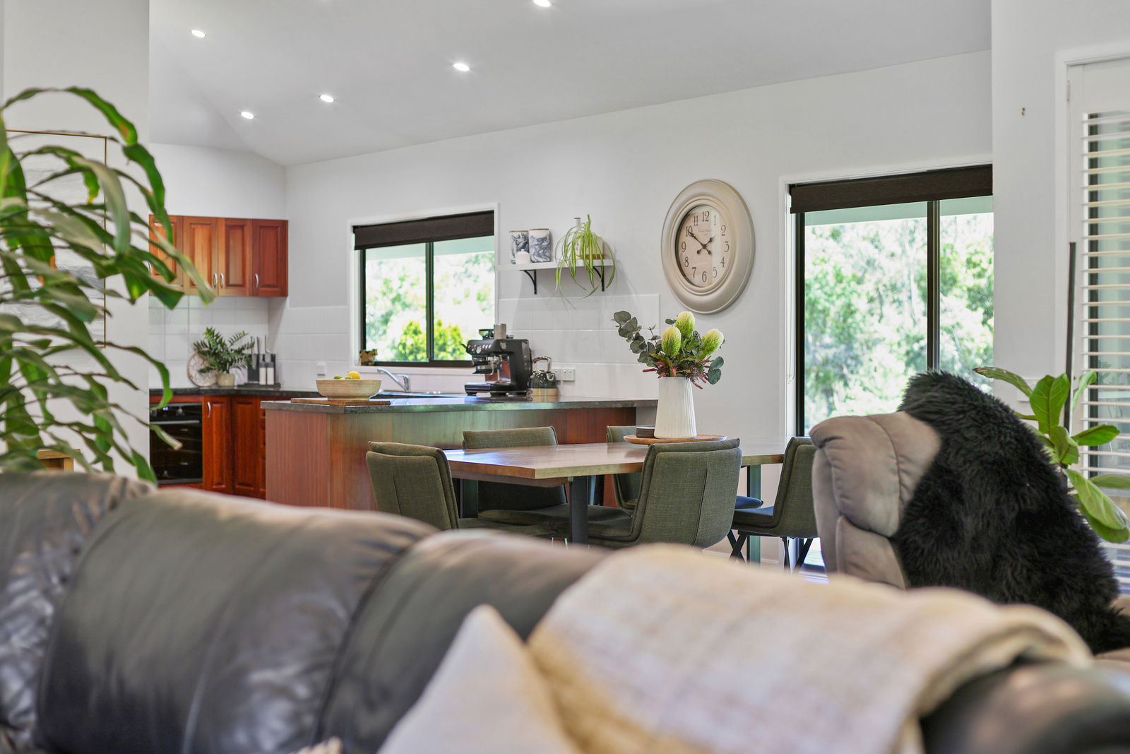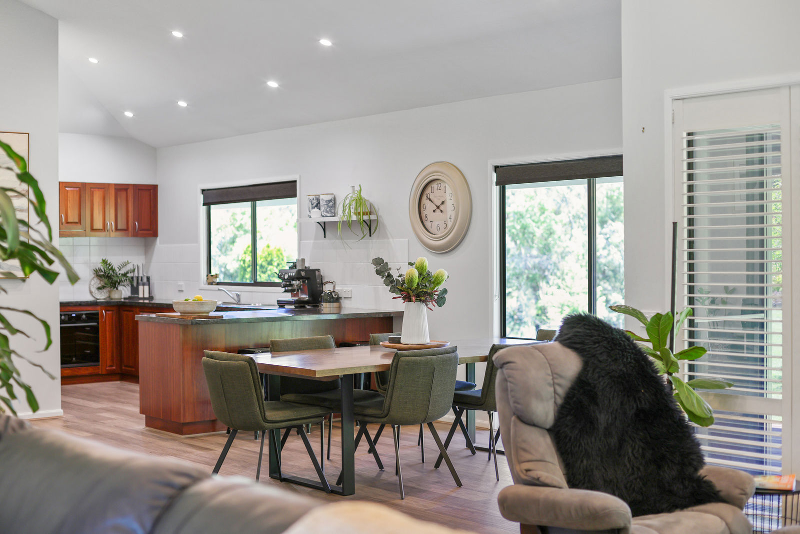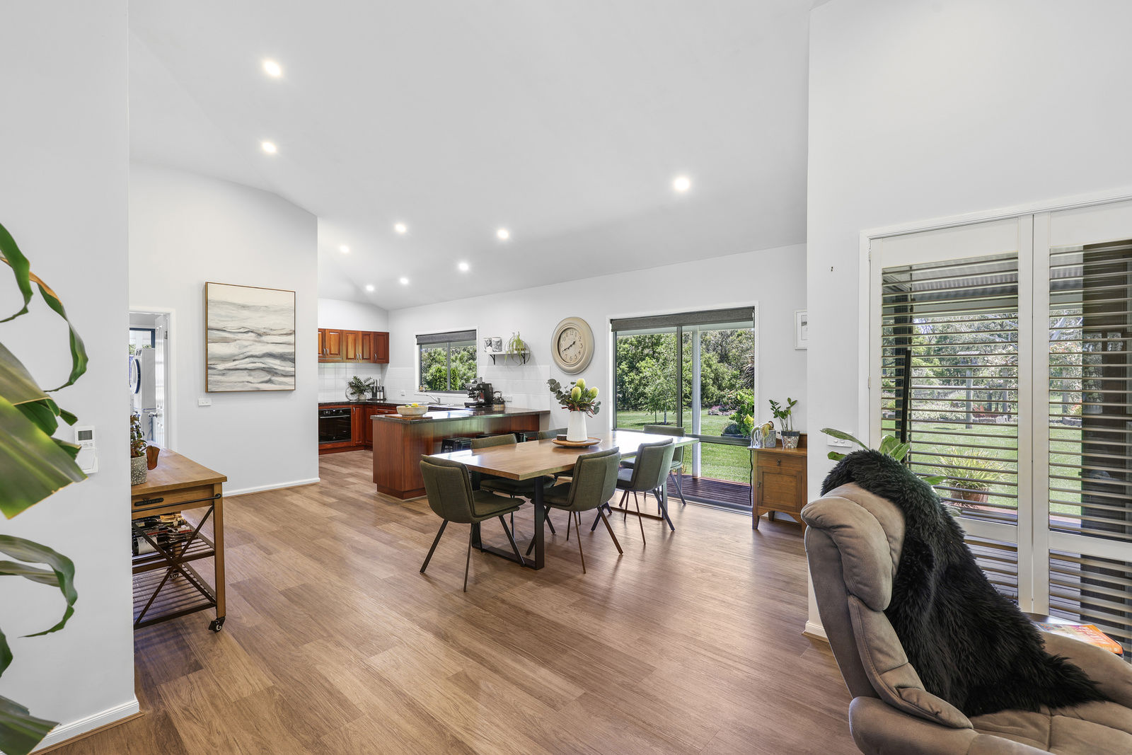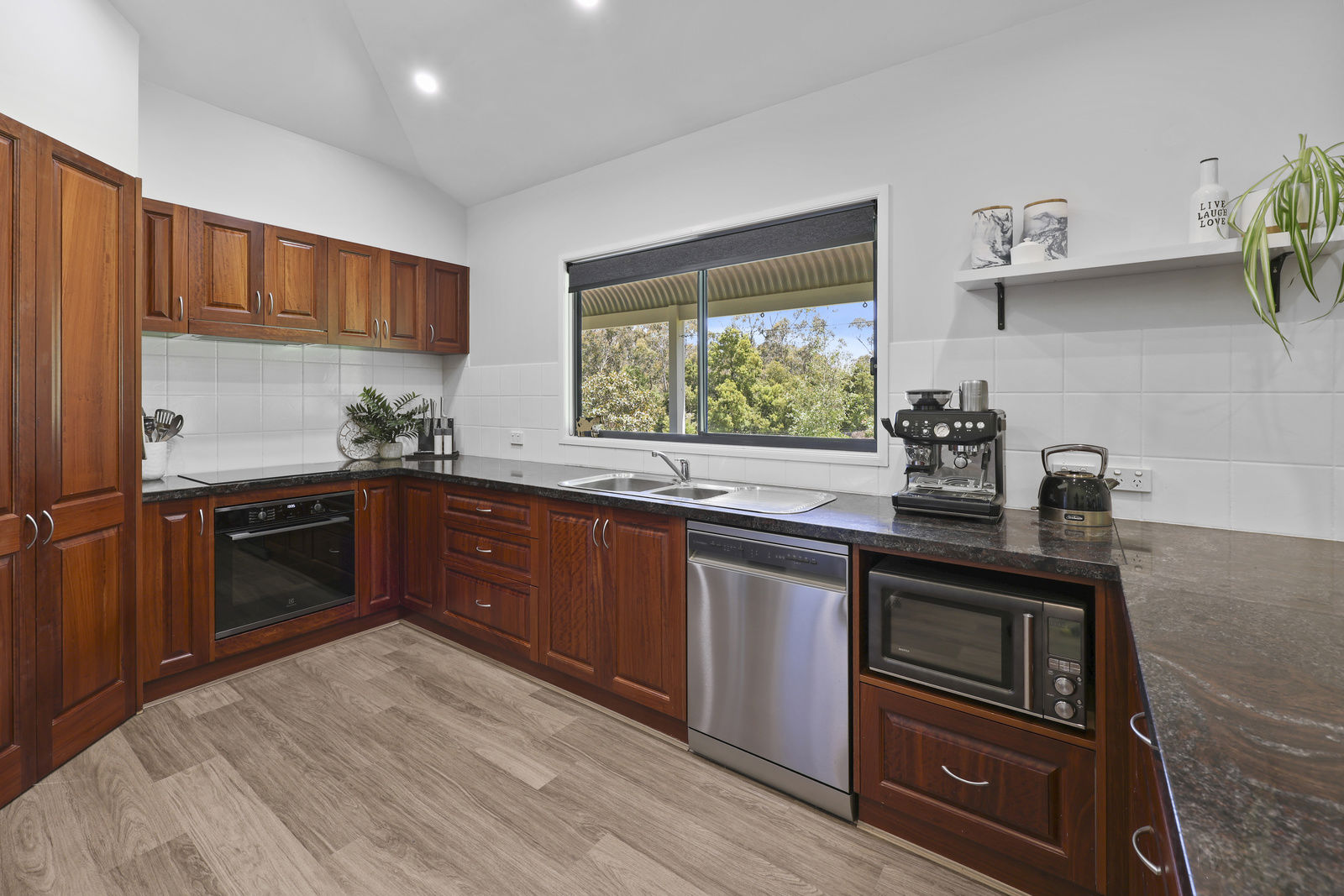 The expansive 3 bedroom homestead has been meticulously crafted to capture the magnificent lake & lush garden views from every oversized window, the perfect blend of tranquility and modern living. Upon entry, you will be delighted by the soaring cathedral ceilings and spacious open plan design. The kitchen is a wonderful space for everyday living as well as entertaining family and friends. It features stunning solid red gum cabinetry and distinctive granite benchtops, while a new oven & induction cooktop have been recently installed.