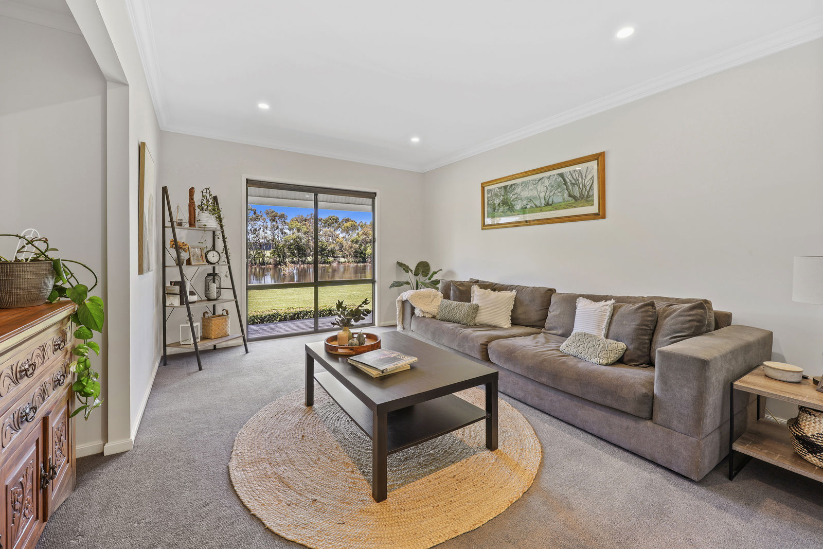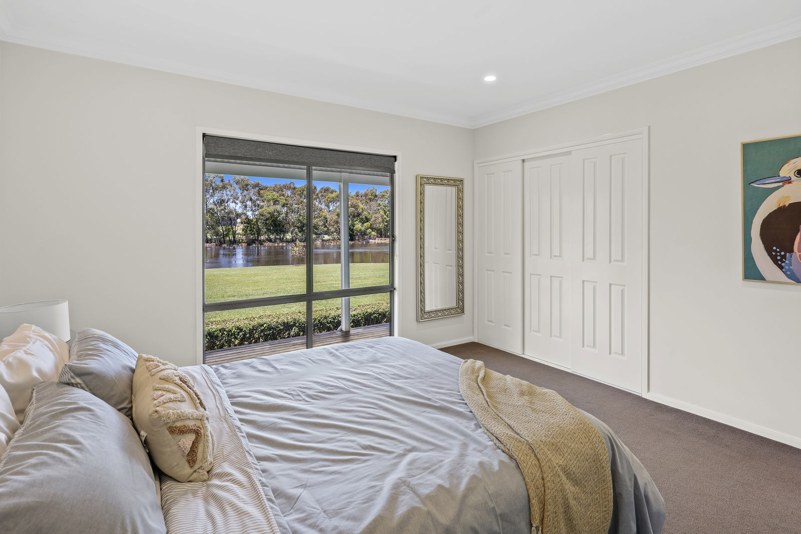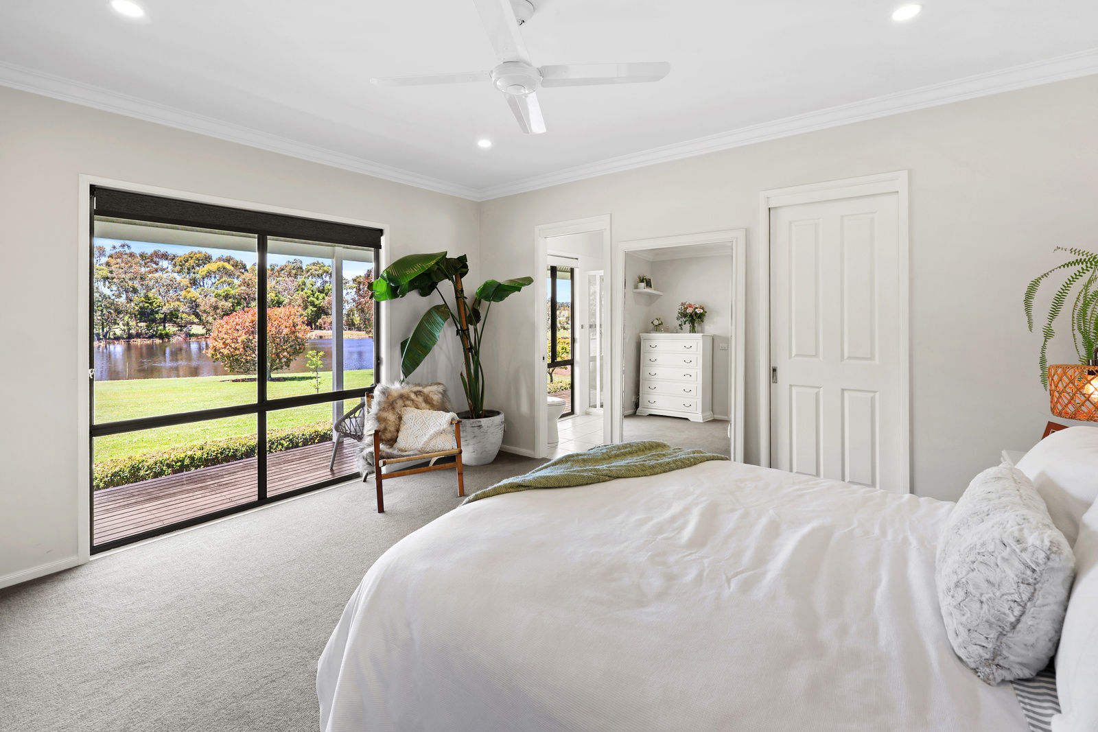 All bedrooms feature plush NZ wool carpeting, and beds 2 & 3 offer spacious built in robes with hanging & shelf space, and are both central to the spacious family bathroom with its extra deep bath - perfect for a soak after a long day on the land. Wake up to the most beautiful water views from the expansive master suite which features modern VJ panelling, walk in robe and spacious ensuite with double shower.