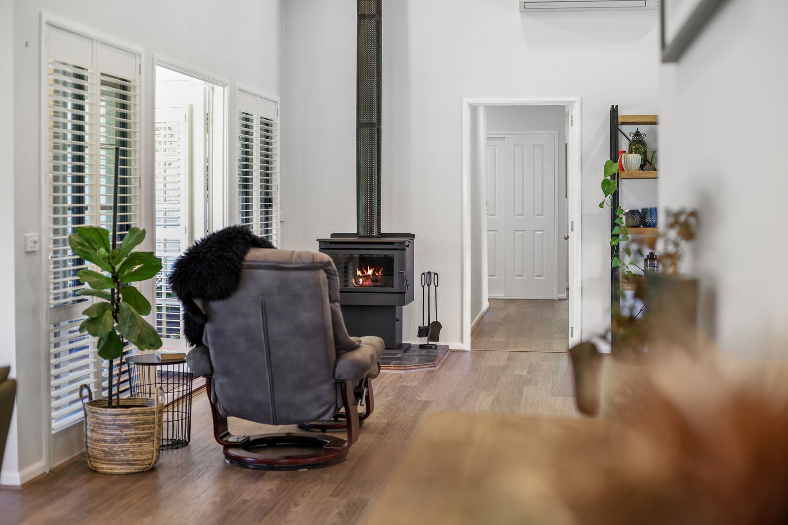 The generous dining and lounge area is framed by modern plantation shutters, and opens to the full wrap around verandah & undercover decking - indoor/outdoor living at its finest. A warm wood fire heats up to 32sqm, while a split system unit ensures year round comfort. A spacious second living area is a perfect media room, or teenage retreat, while the office is the ultimate work from home space and includes a second split system unit and tech savvy security camera monitoring system that covers the span of the property.