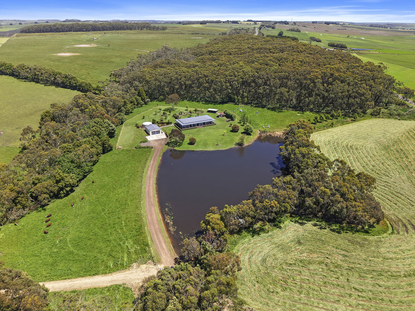 Some of the most fertile & productive soils known to this area, ideally positioned in the super reliable rain belt of 949mm* per annum, provide for outstanding pasture growth and livestock do-ability. Beautifully fenced and well maintained gravel tracks provide great ease of management to the whole farm. A reticulated water system services all paddocks, and native plantations provide excellent shelter for grazing stock and native wildlife alike.