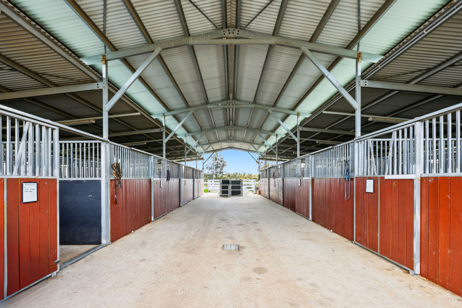 At the centre of the property stands a comfortable four-bedroom, two-bathroom homestead, complemented by a separate guest residence. Practicality and purpose define the estate's improvements, with workshops, hay shed, two stable complexes, foaling yards, horse walker, and sand roll providing exceptional versatility.