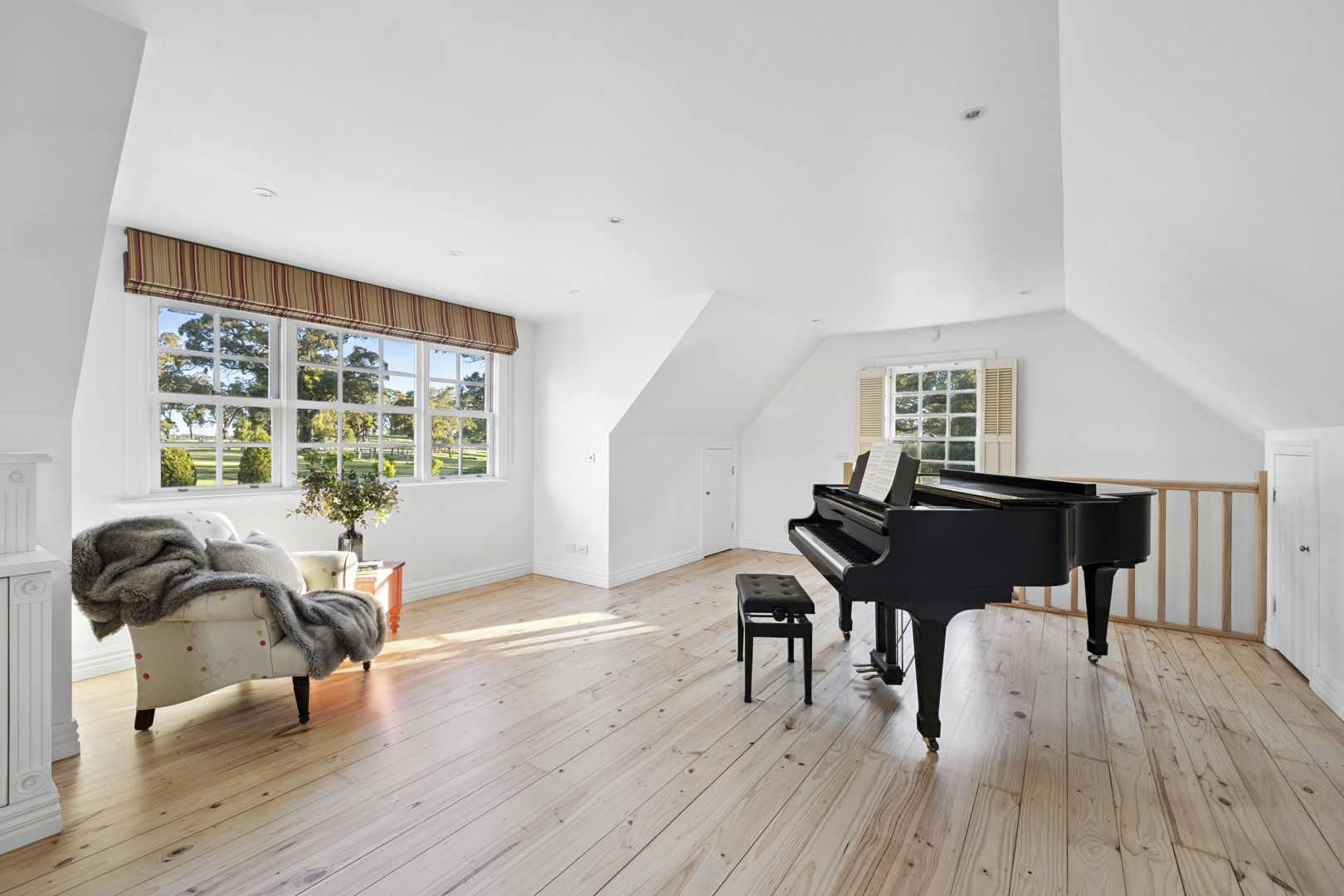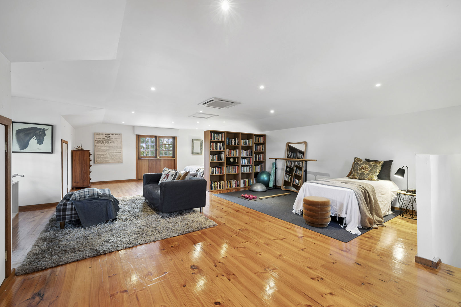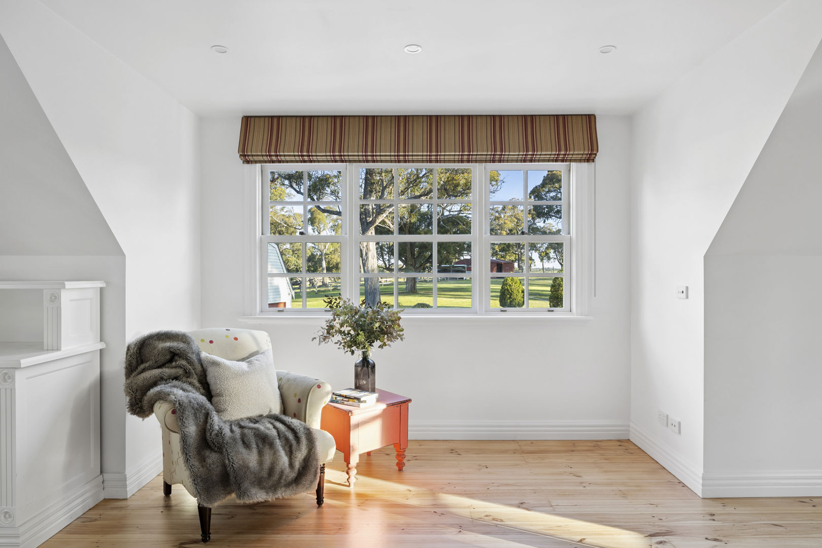 This is the kind of home that instantly feels welcoming. Wide verandahs, dormer windows and wisteria climbing across the façade create a timeless sense of country romance, while inside, the home is warm, bright and beautifully connected to the outdoors. Light filled living spaces look out across the gardens and pool, offering easy spaces to gather, relax or entertain throughout the seasons.