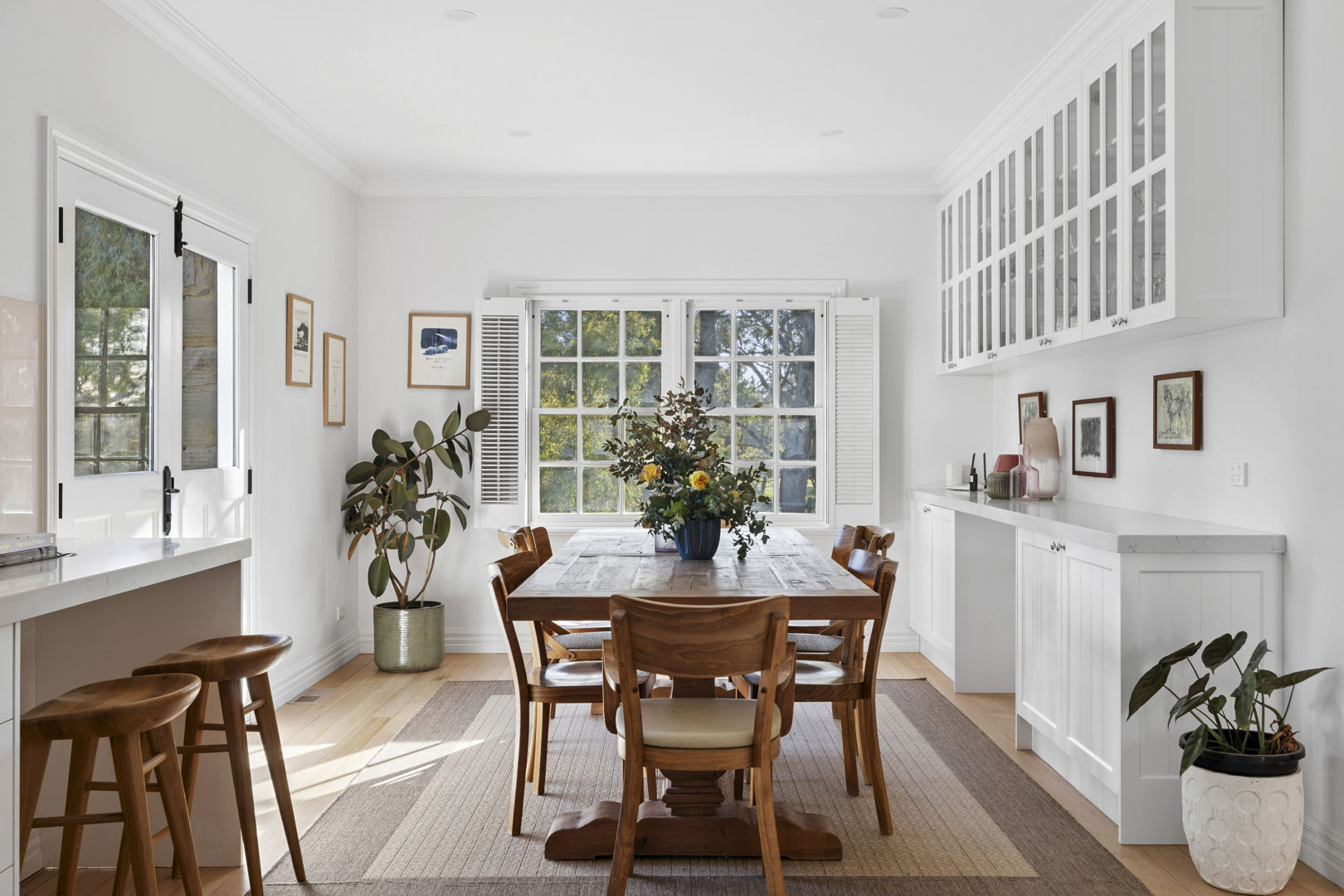 This is the kind of home that instantly feels welcoming. Wide verandahs, dormer windows and wisteria climbing across the façade create a timeless sense of country romance, while inside, the home is warm, bright and beautifully connected to the outdoors. Light filled living spaces look out across the gardens and pool, offering easy spaces to gather, relax or entertain throughout the seasons.