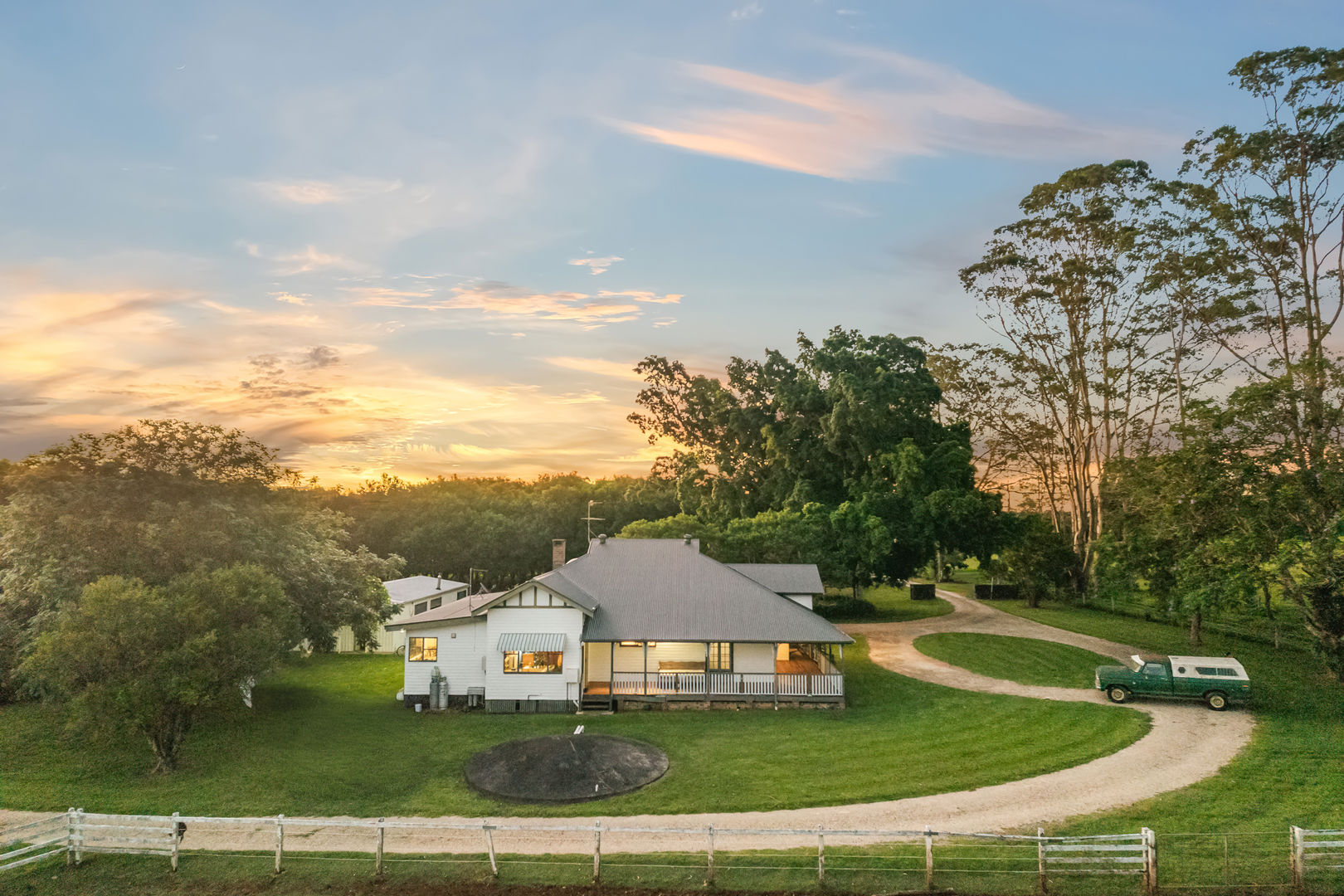 Peacefully secluded on an elevated and picturesque 4.99-acre estate at the end of a long private driveway, this warm and character-filled residence presents an exceptional opportunity to secure a highly versatile rural holding in one of the region's most sought-after lifestyle pockets. Perfectly positioned just minutes to Newrybar and less than 10 minutes to Bangalow village, the property captures refreshing sea breezes and delivers the ideal balance of tranquillity, convenience and potential.