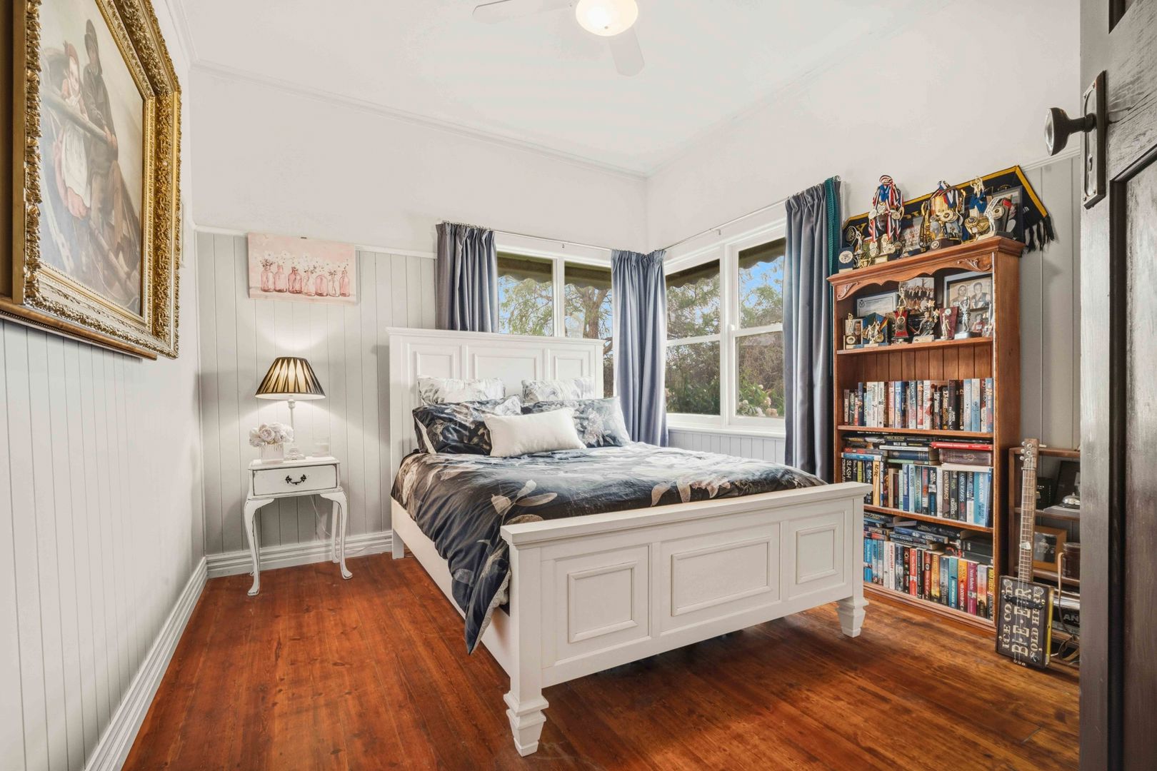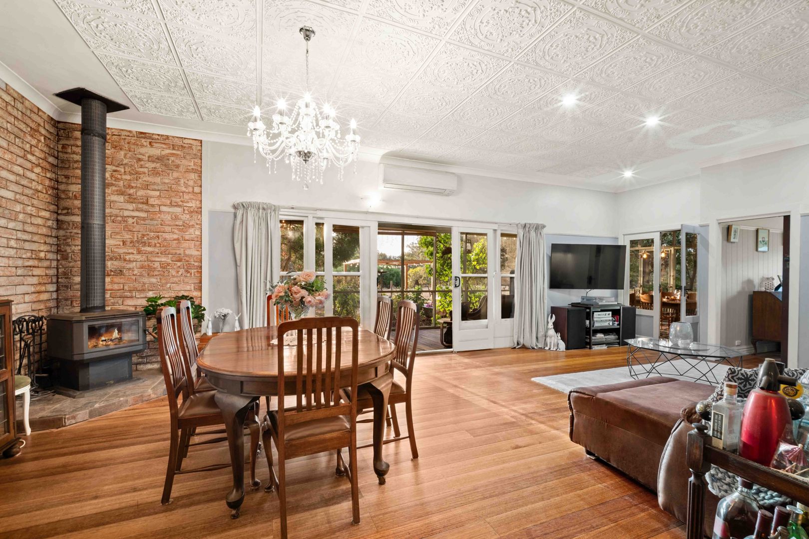 This charming weatherboard home offers three bedrooms, two bathrooms, and a spacious living room, complemented by a dedicated dining area with beautiful character touches including ornate ceilings and a cosy wood heater. The inviting kitchen features bottle gas cooking and a stunning pressed metal splashback. The master bedroom includes an ensuite and robes, while the remaining bedrooms provide built-in robes and ceiling fans for year-round comfort.