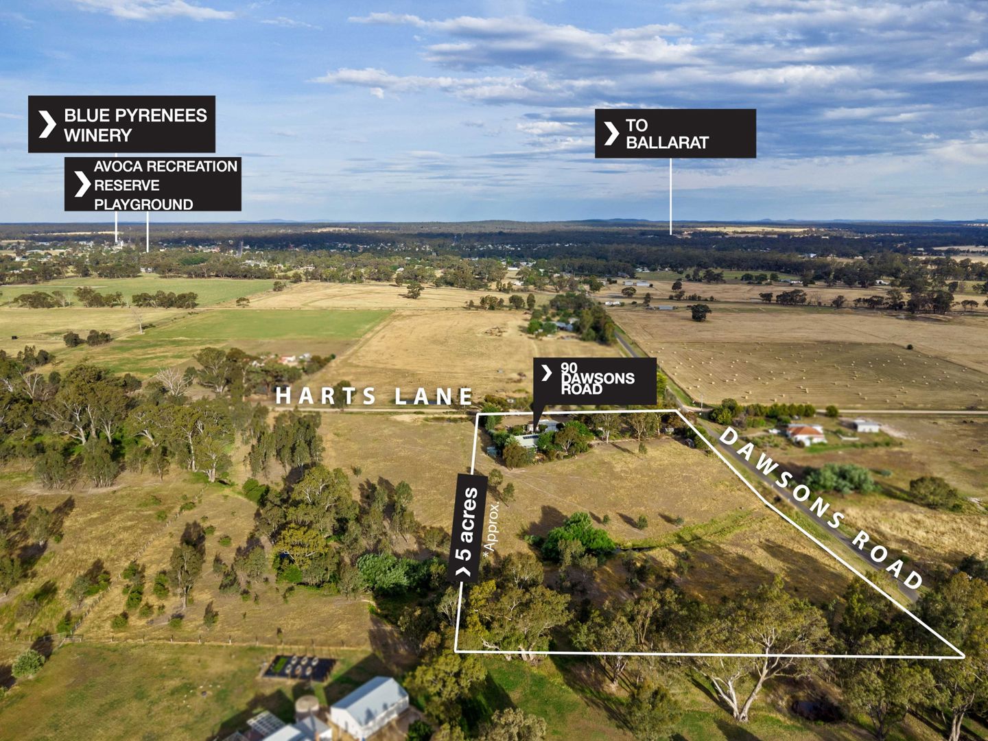 Experience the ultimate lifestyle on this 5-acre property, perfectly positioned in the heart of the Pyrenees Wine Region and only walking distance to Avoca township conveniences. With Blue Pyrenees Winery just 5km away, Mount Avoca Winery only 4km, and the Avoca Race Track approx. 1km from your front gate, this is regional living at its finest with stunning views of the Pyrenees Ranges.