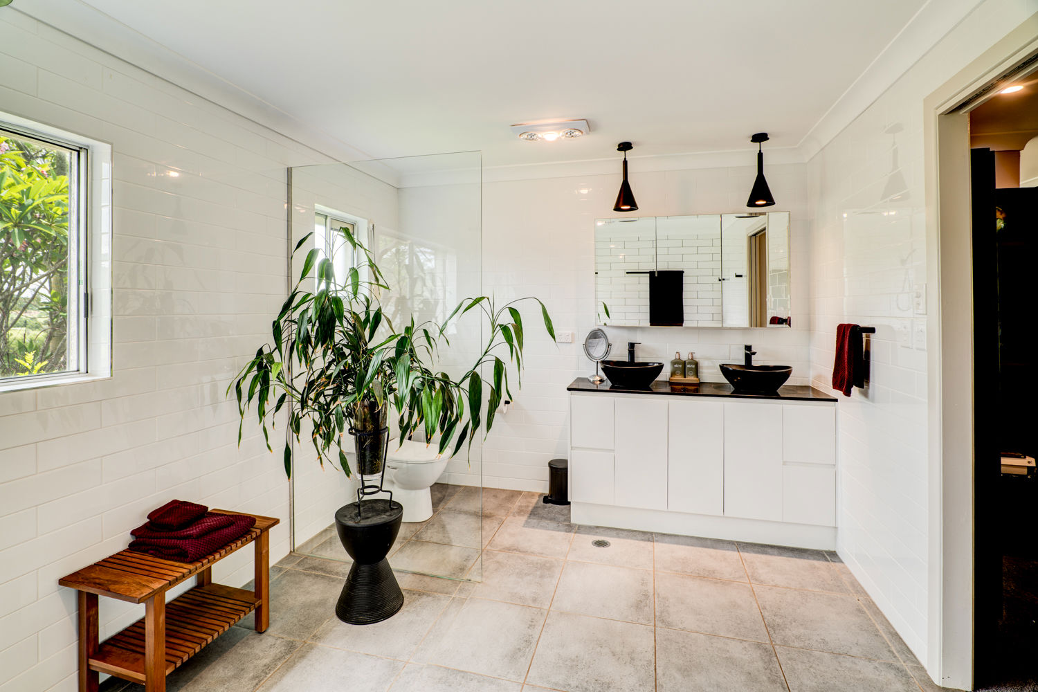 • 2 Bathrooms - Spacious main bathroom with separate Toilet + Ensuite in Master Wing including a freestanding bathtub, own toilet, double vanity + dual rainfall shower