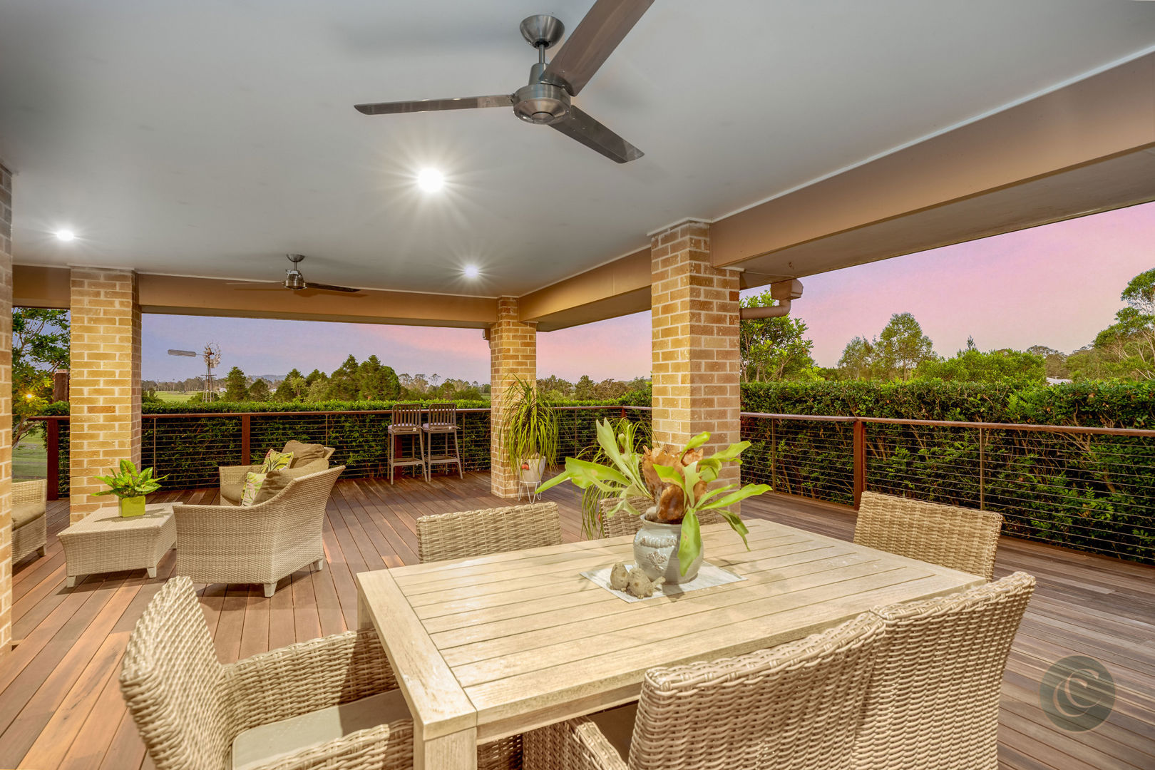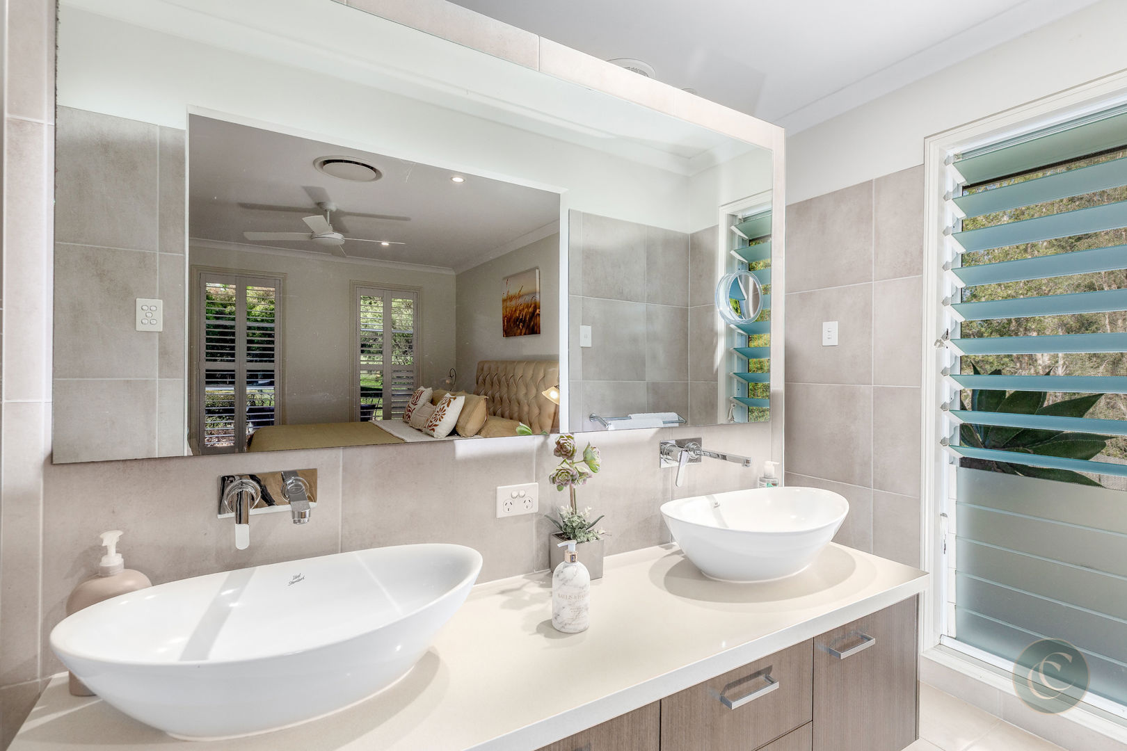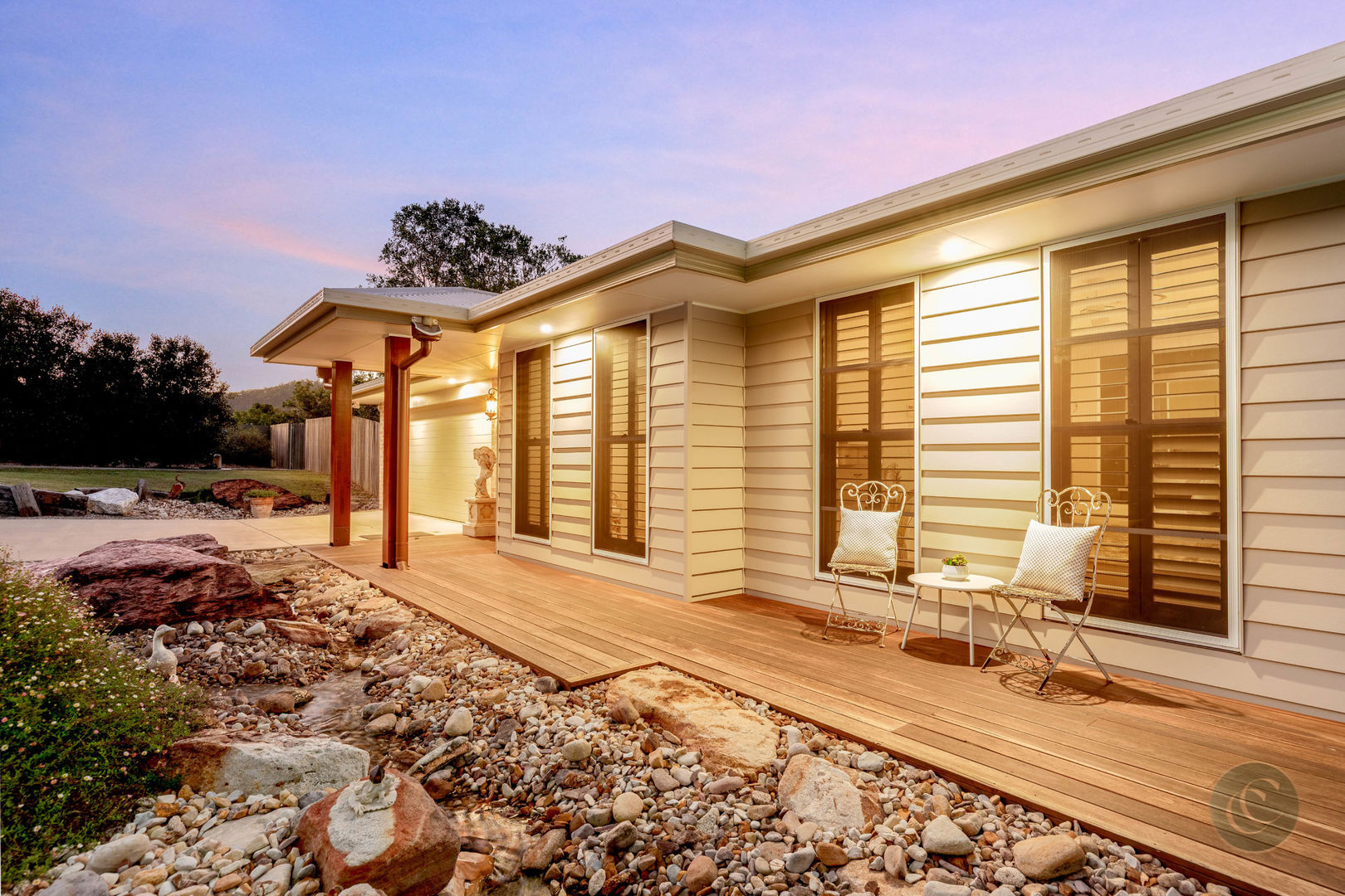 Outdoor living is equally impressive, with a spotted gum deck at the rear of the home providing a peaceful space to relax and take in the surrounding birdlife and wildlife. The landscaped native gardens feature a beautiful water feature garden, adding to the tranquil atmosphere. A fire pit area invites evenings under the stars, while electric front entrance gates and dog-proof fencing around the backyard ensure both security and peace of mind.