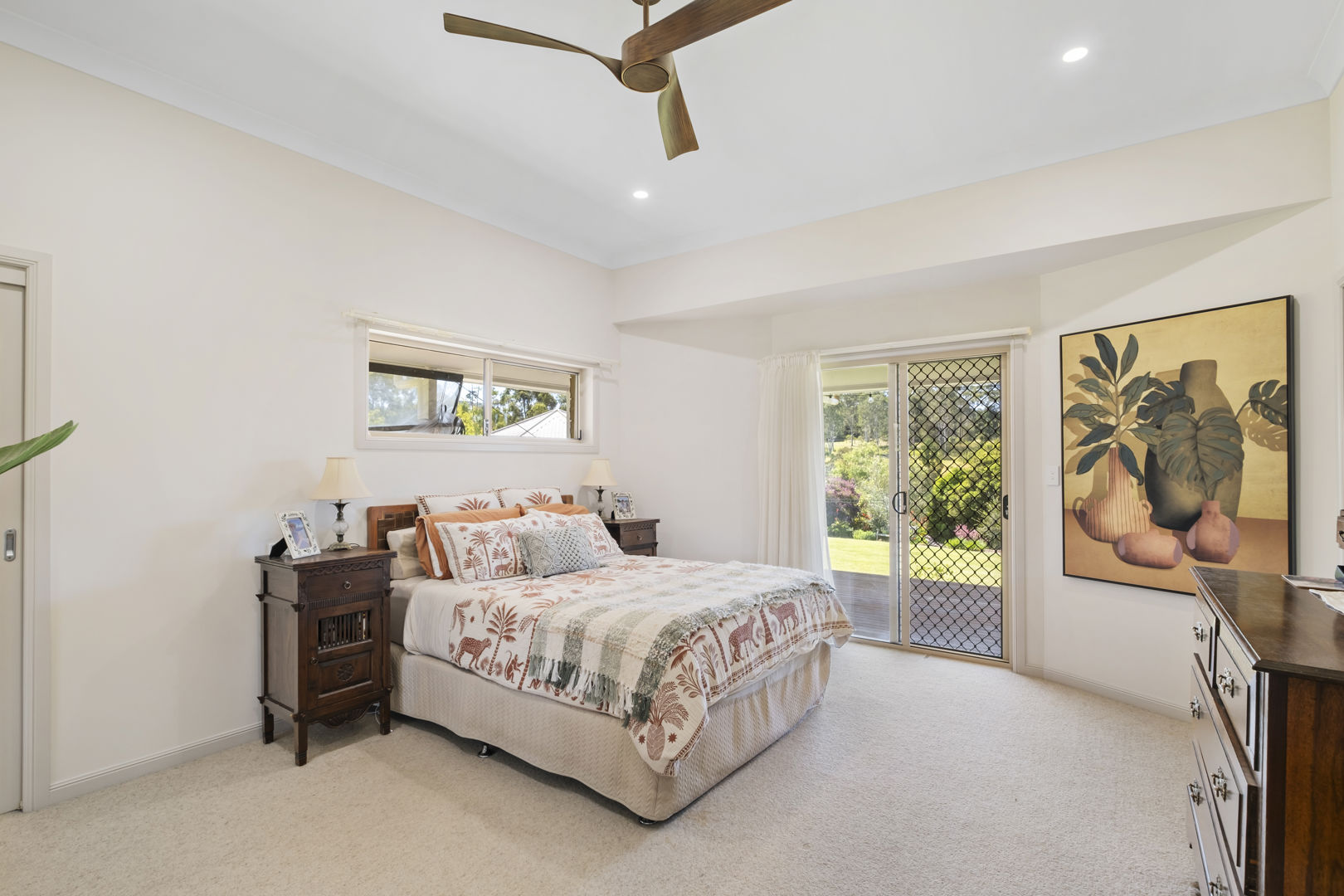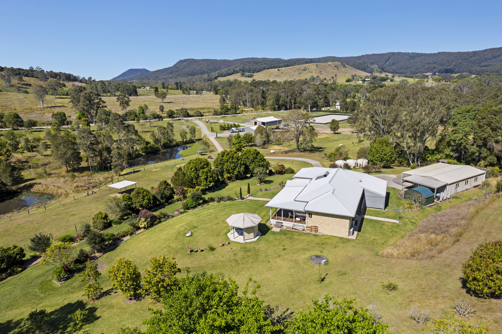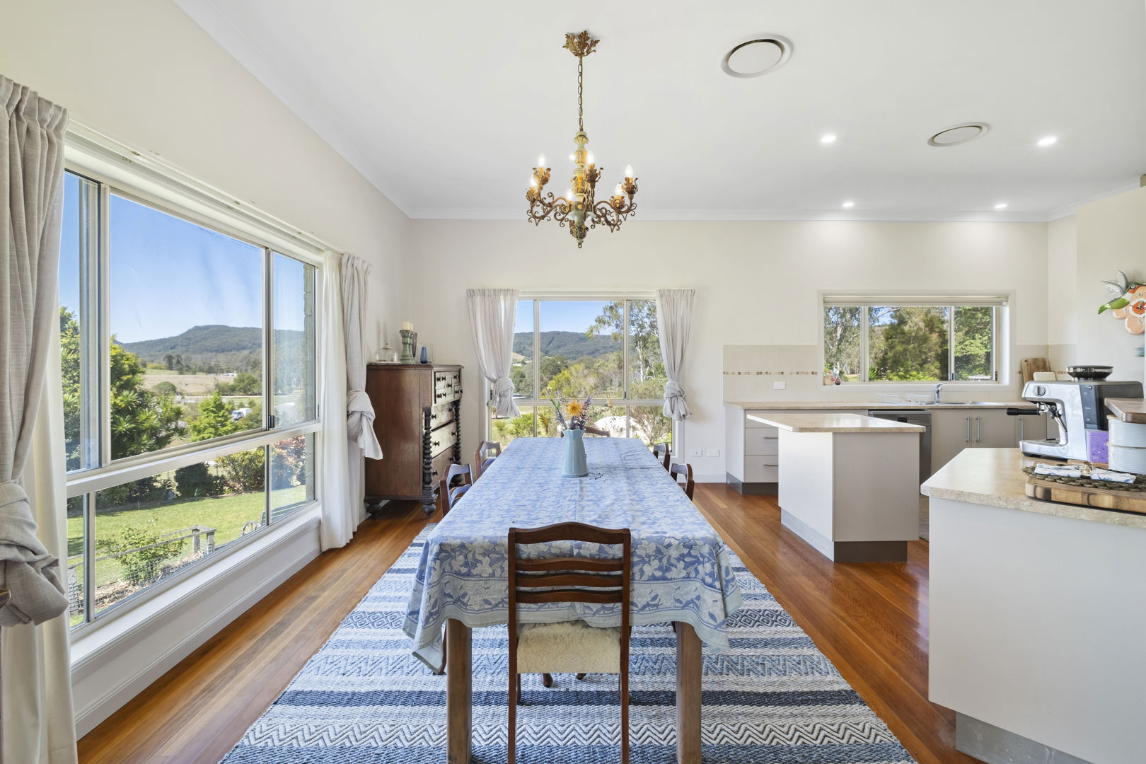 The home spills out onto a north-east facing deck, the perfect spot to take in sweeping views across manicured gardens, heritage roses and the rolling hills beyond. Morning sunrises here are nothing short of spectacular. Practical features include a fruit orchard, five-bay powered garage, water tanks, solar hot water and ducted air conditioning - all designed to make country living as comfortable as it is picturesque.