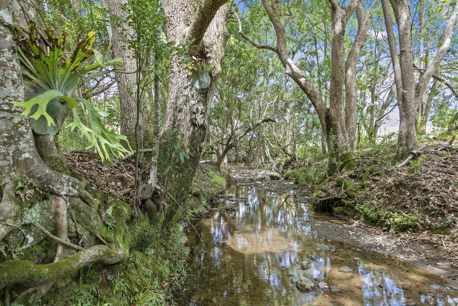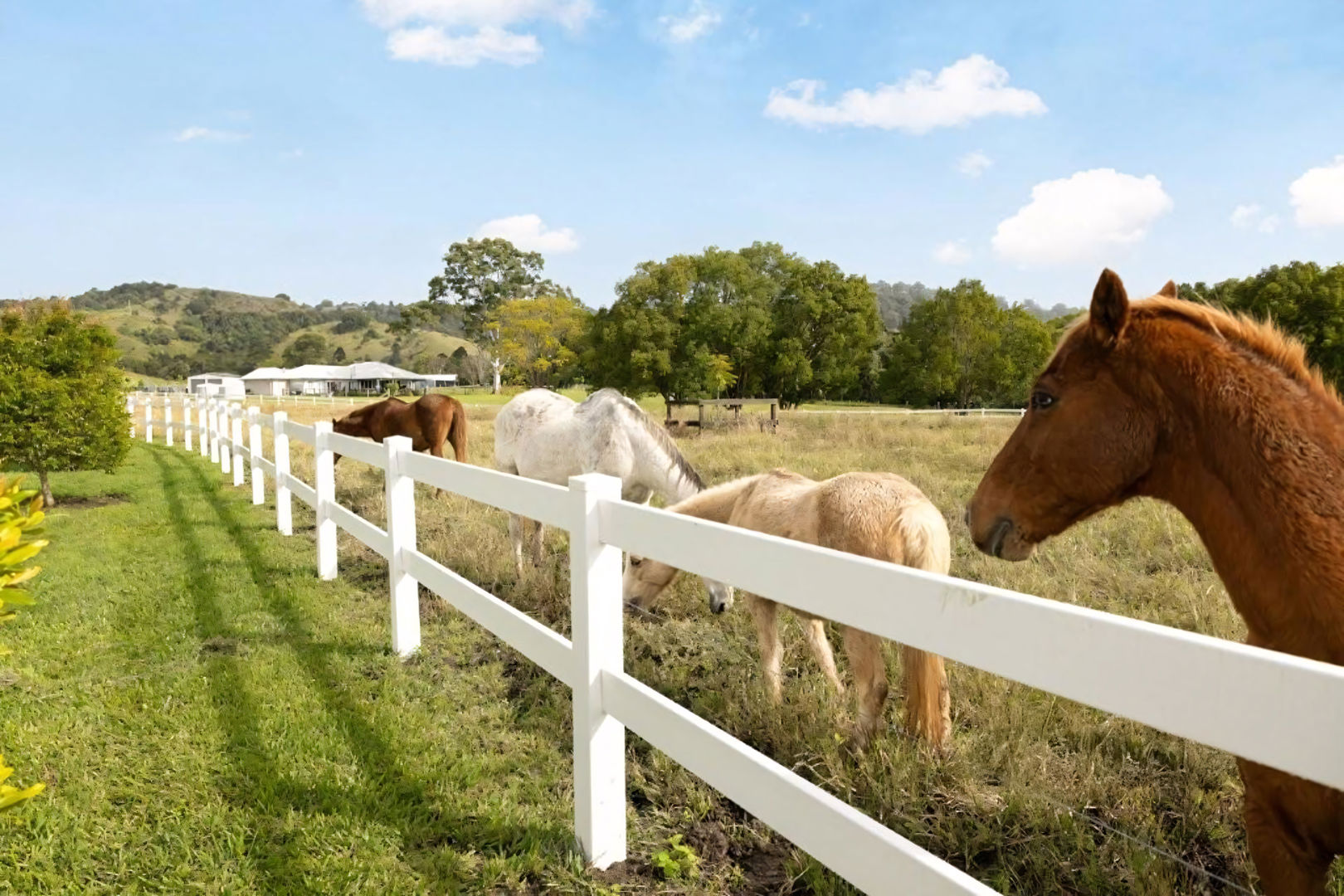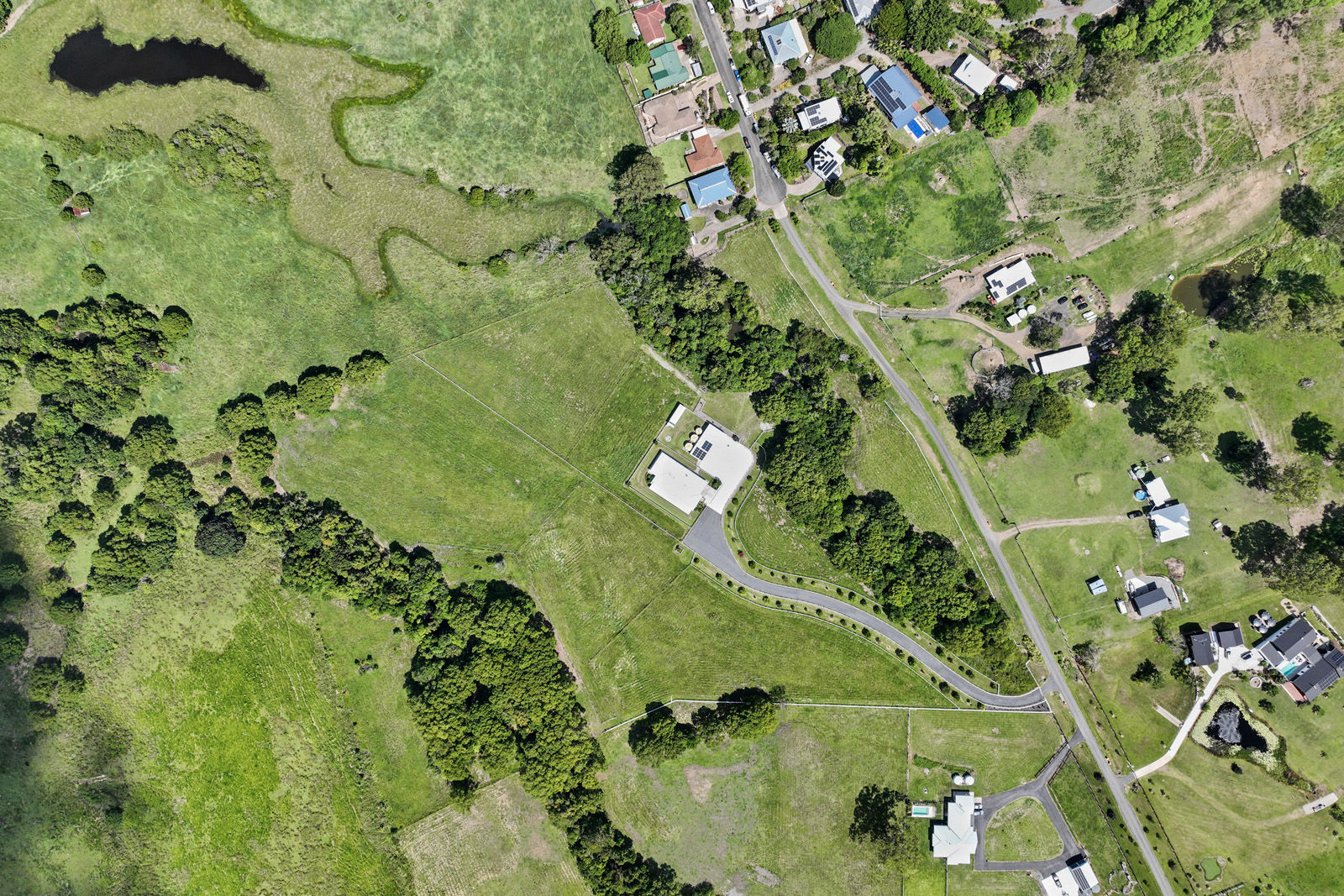 Equestrian and rural infrastructure has been carefully considered and is ready for immediate use. The approximately 14 acres of gently undulating, fully usable land is divided into nine paddocks featuring a combination of post-and-rail and electric fencing, currently set up to comfortably accommodate up to ten horses. Improved Rhodes grass pastures provide quality grazing year-round, while two spring-fed creeks offer a reliable natural water source. Supporting the land is a substantial shed for all the toys with water, shelving, remote-access doors and a mezzanine level, complemented by an adjoining open shed ideal for tractors, horse floats or additional machinery.