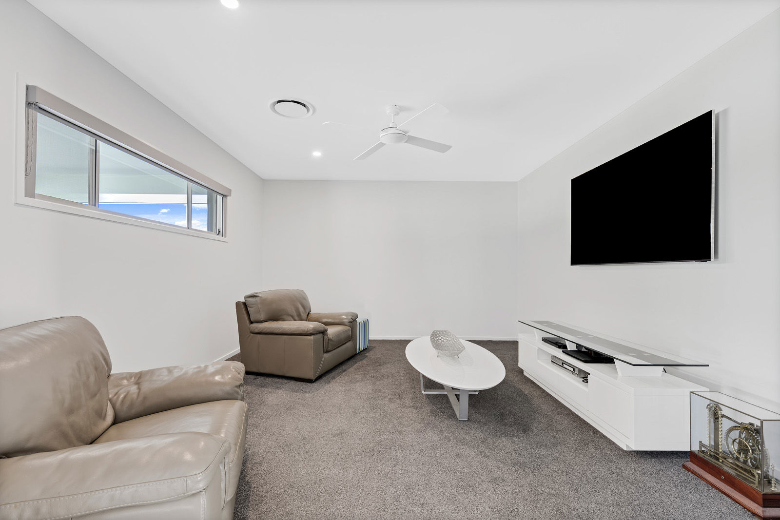 Built in 2021, the 285m² residence has been thoughtfully designed for modern family living. Four generous bedrooms, open plan living, dedicated media room plus a purpose-built hobby room or home office with its own entry, providing space for family, guests or quiet retreat.