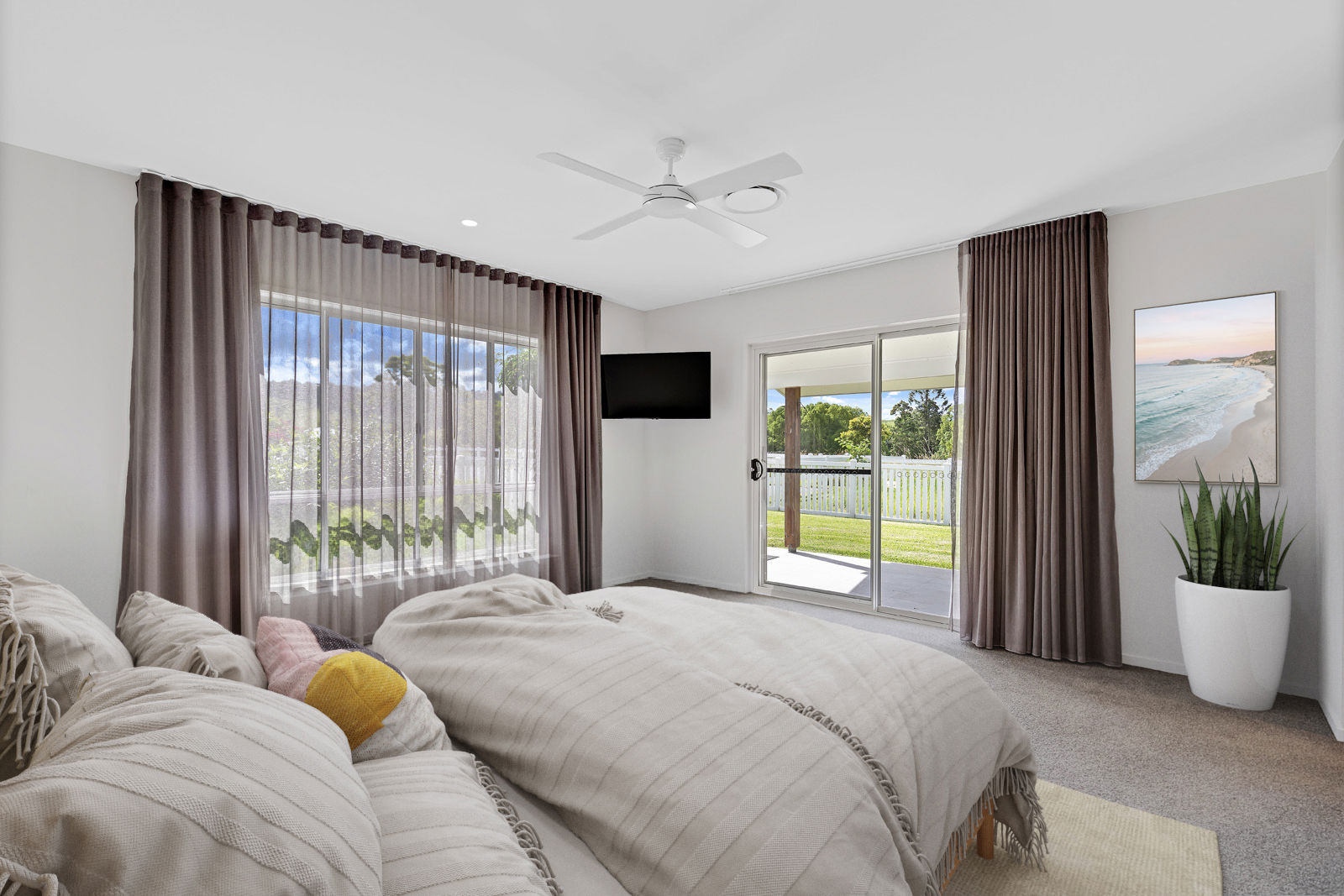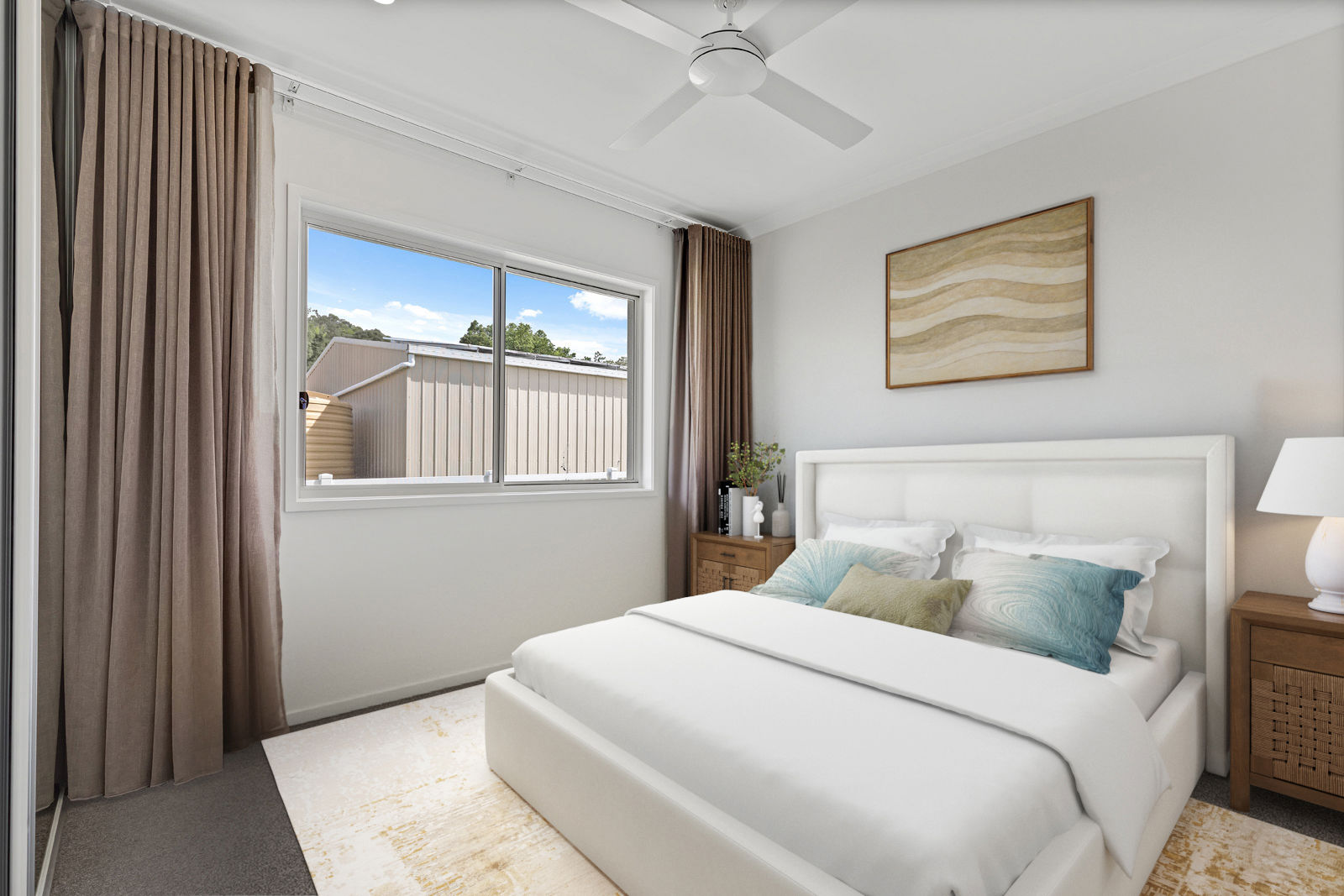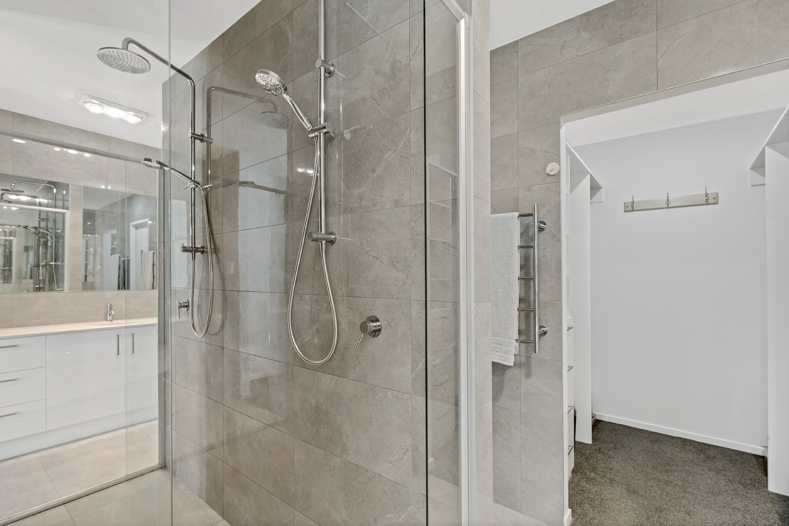 The master suite is a true sanctuary, with private access to the outdoor patio and sweeping rural views and separation from the other 3 generous bedrooms. The ensuite is designed for both luxury and practicality, featuring a walk-through double shower with separate vanities and walk-in robes either side. Perfectly combining style, space and everyday comfort.