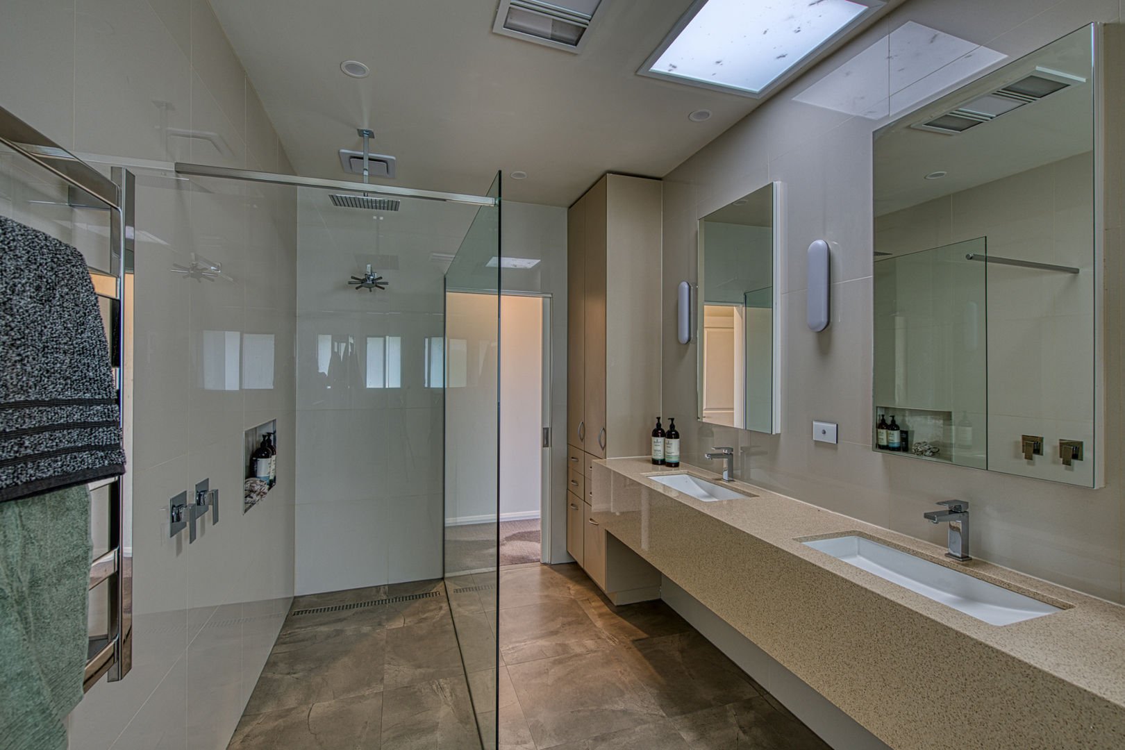 Expansive living areas with high vaulted ceilings, impressive kitchen and scullery, home office, theatre room, a beautifully light and bright master bedroom with an enormous ensuite and walk-through robe opening onto the north-facing deck, plus a seamless floorplan linking each space to the outdoors. A separate self-contained studio with full kitchen, Walk in Robe and bathroom, opening onto a north facing deck, ideal for guests, extended family or as a teenage retreat,