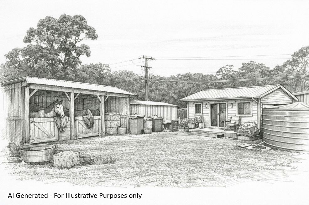 - Multiple sheds across the property, including two with strong potential for conversion into studio-style accommodation or stables (STCA)