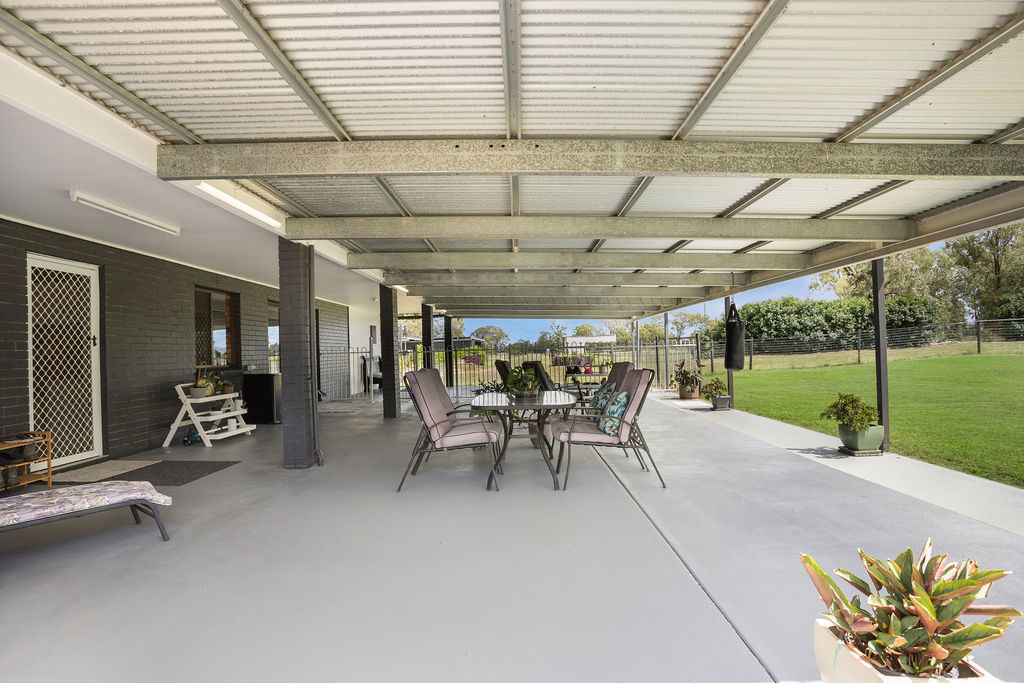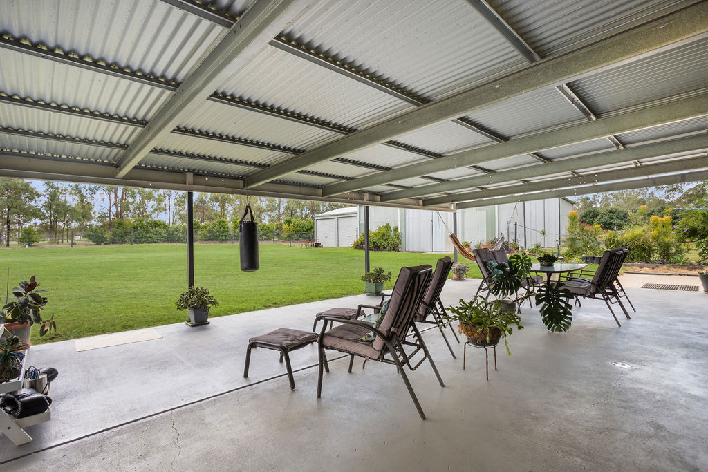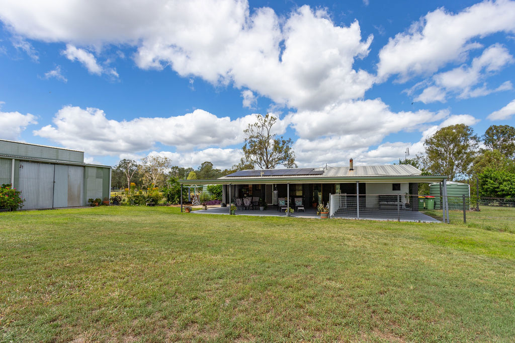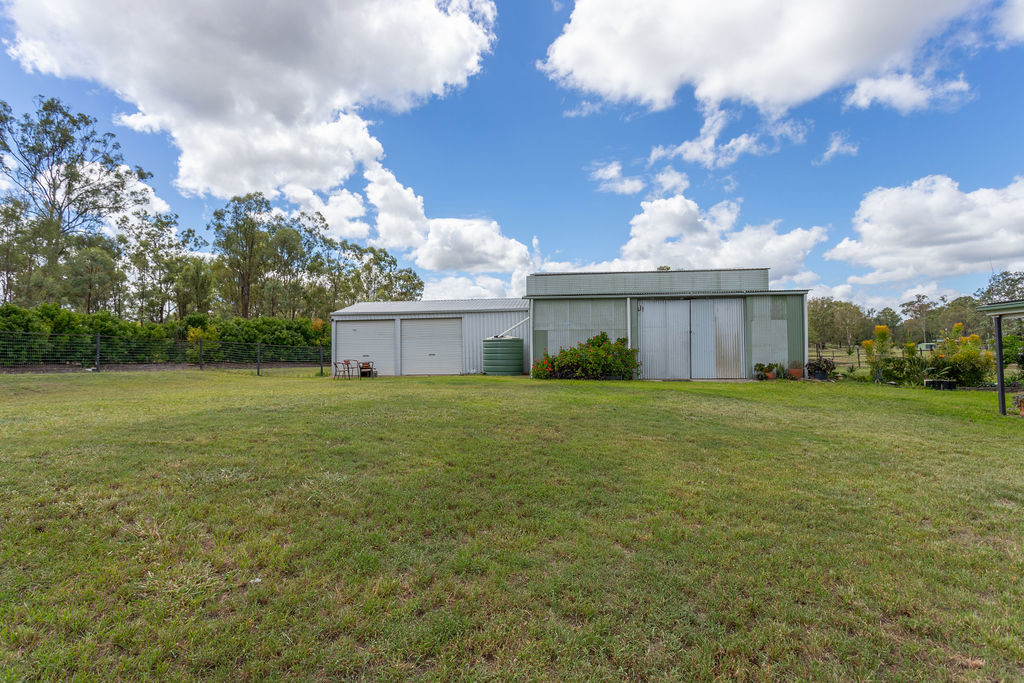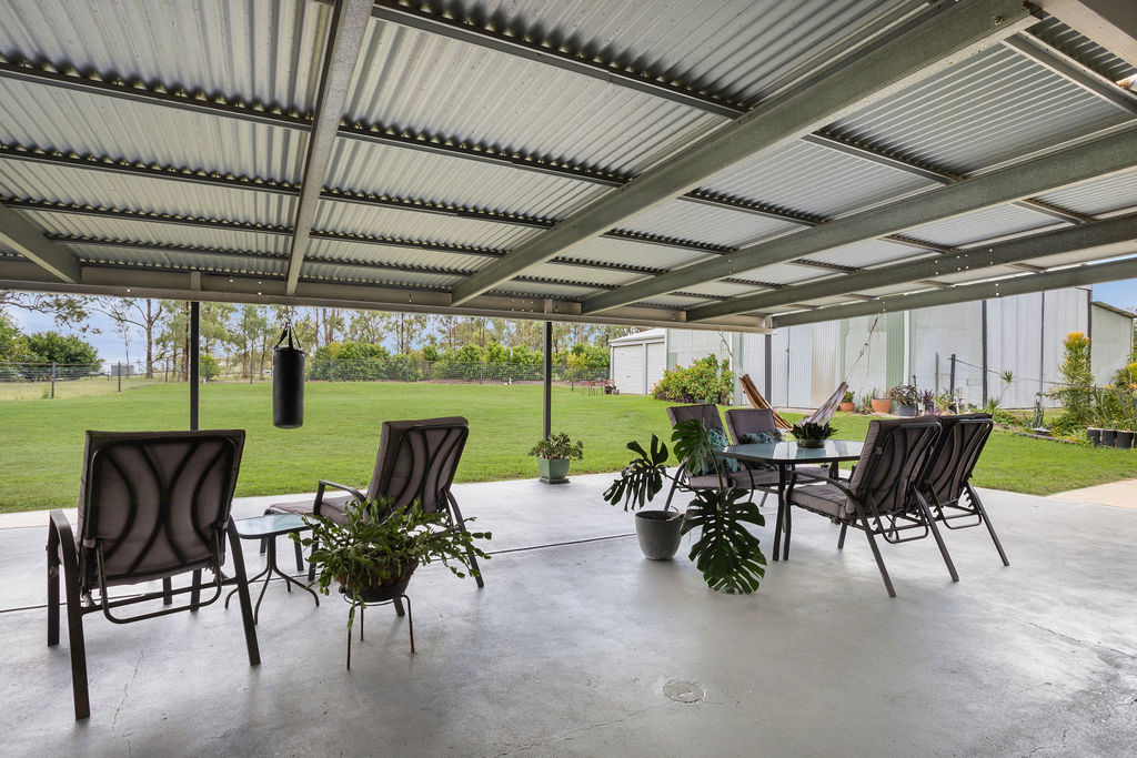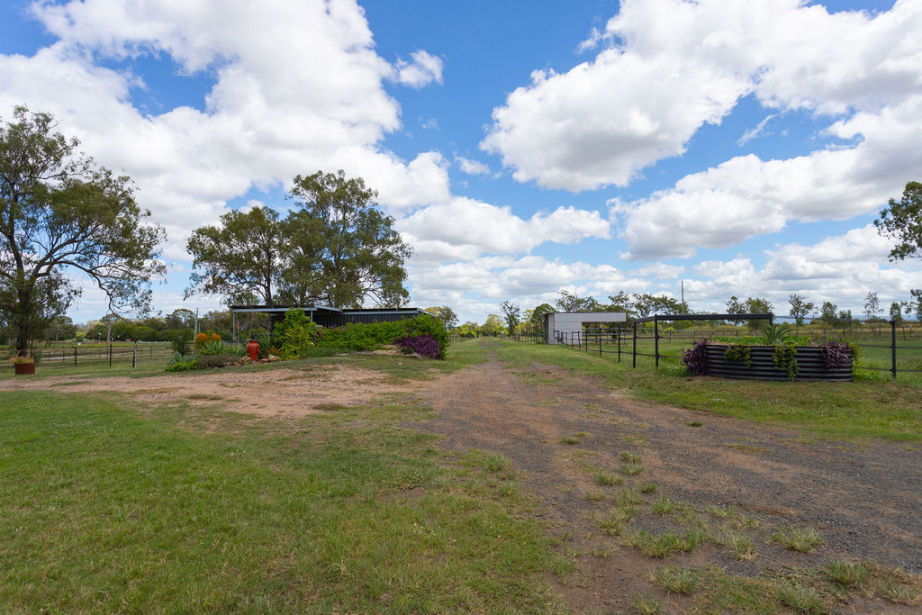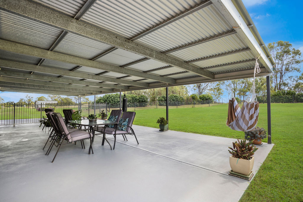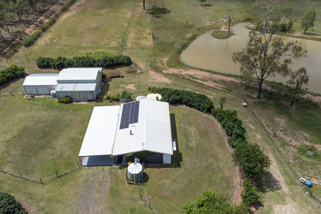 The property is equally well-equipped for rural living, offering front and rear house yards, multiple water sources including 3 large and 3 small tanks, along with 2 large dams and an additional smaller dam-providing ample water security for both livestock and household use. Access is made easy with a solar-powered gate at the Fernvale/Forest Hill driveway, while practical additions like a double garage, chook pen, smaller feed shed, and a John Deere ride-on mower (under 120 hours) enhance the overall functionality of the property.