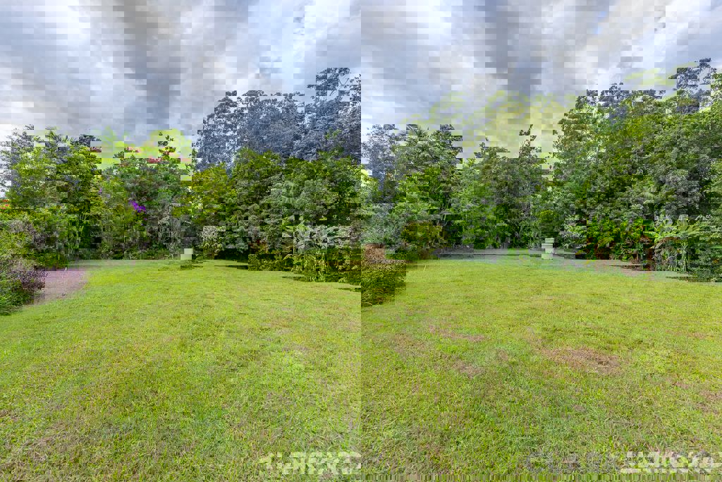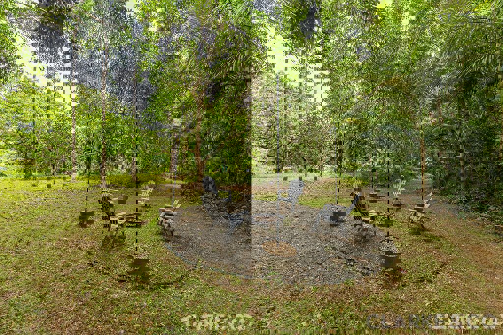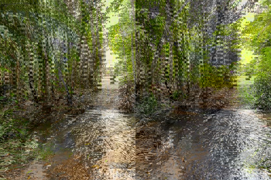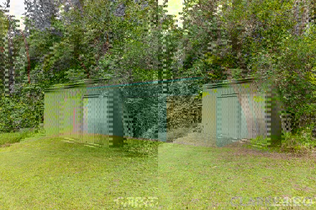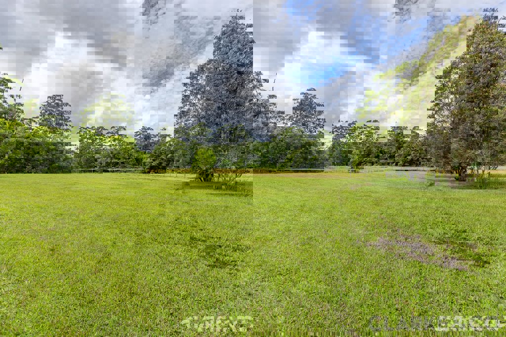 A leafy walk leads you down toward a freshwater creek that meanders through the property, naturally separating the front section from the lush rear paddocks. Beyond this picturesque waterway lies an established fruit orchard featuring a variety of mature tropical and citrus trees — a peaceful, productive space complete with an open shed, water tank, and a brand-new self-contained, off-grid one-bedroom cabin positioned nearby.
