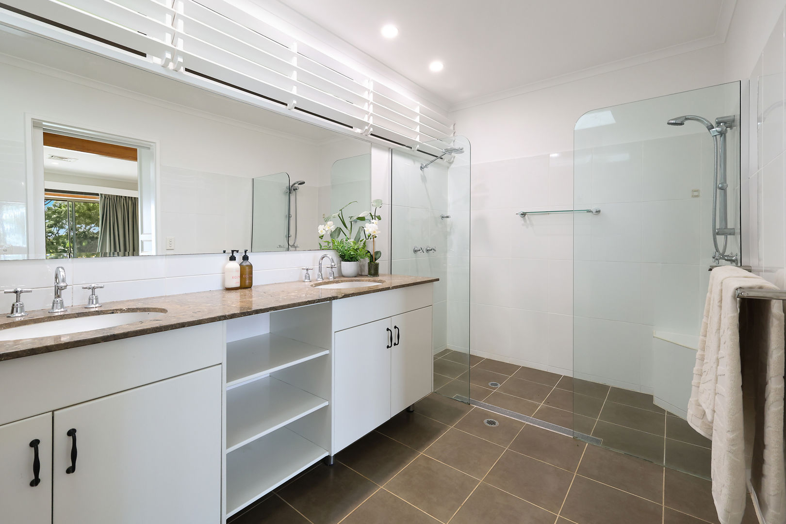 - Three spacious bedrooms with ensuites; one boasts handy external access