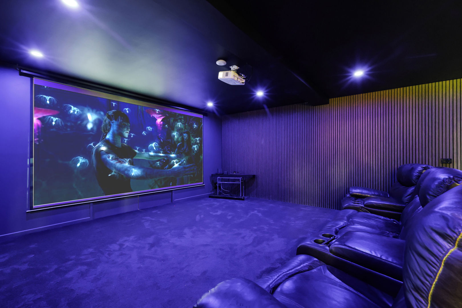 - Cinema includes automated lighting, large screen and projector