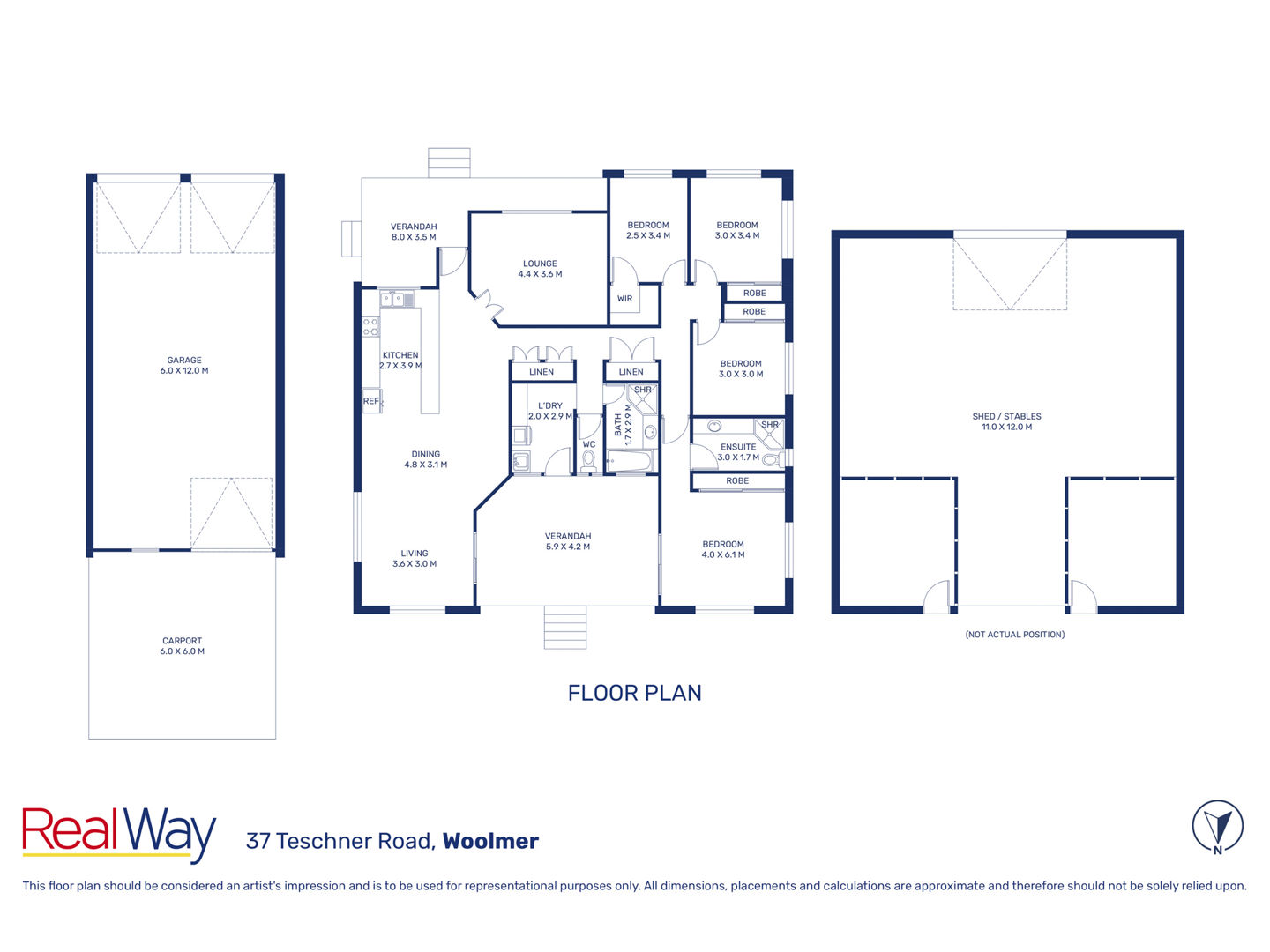 - Large 11m x 12m powered shed complete with tack room and two water-fed stables
