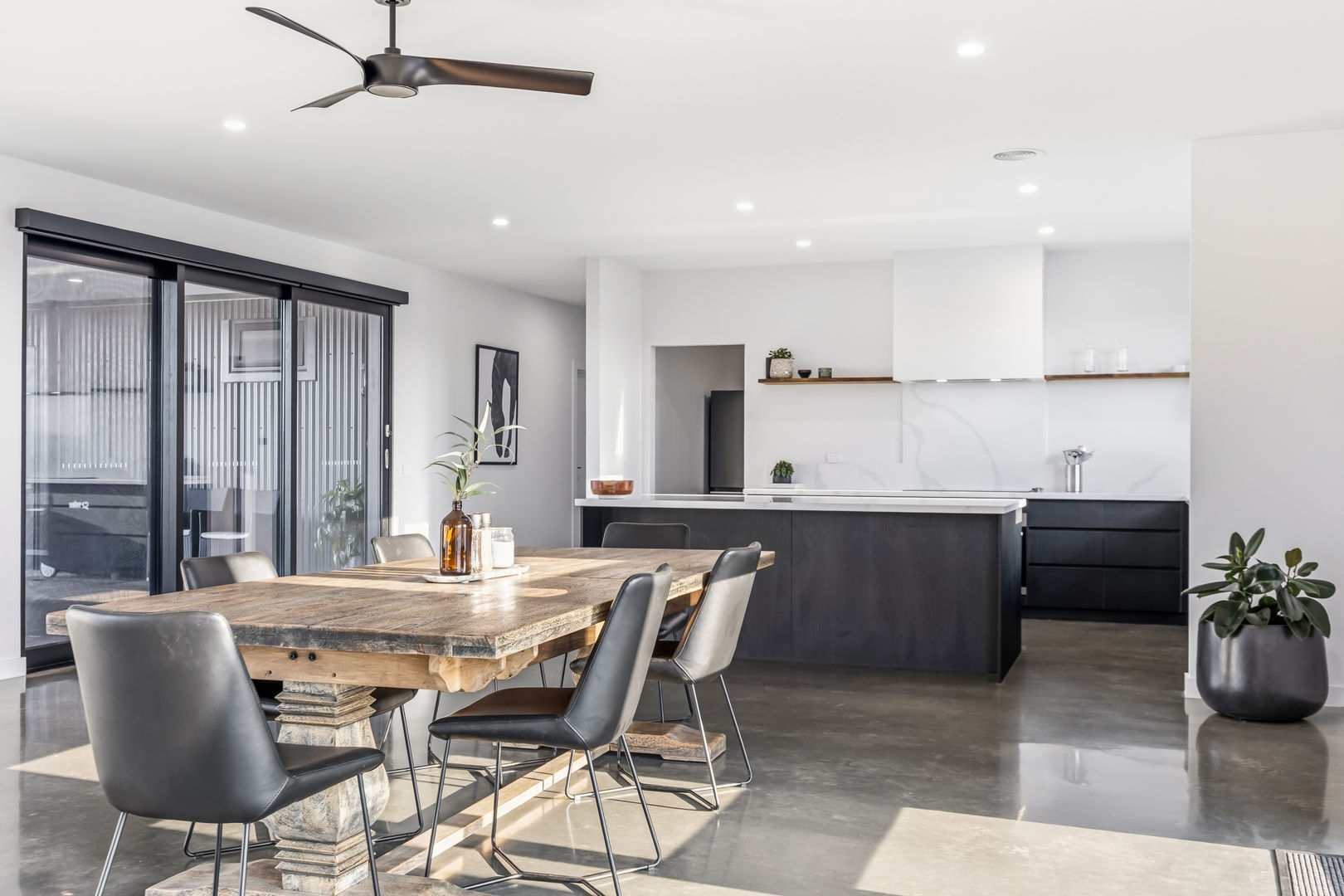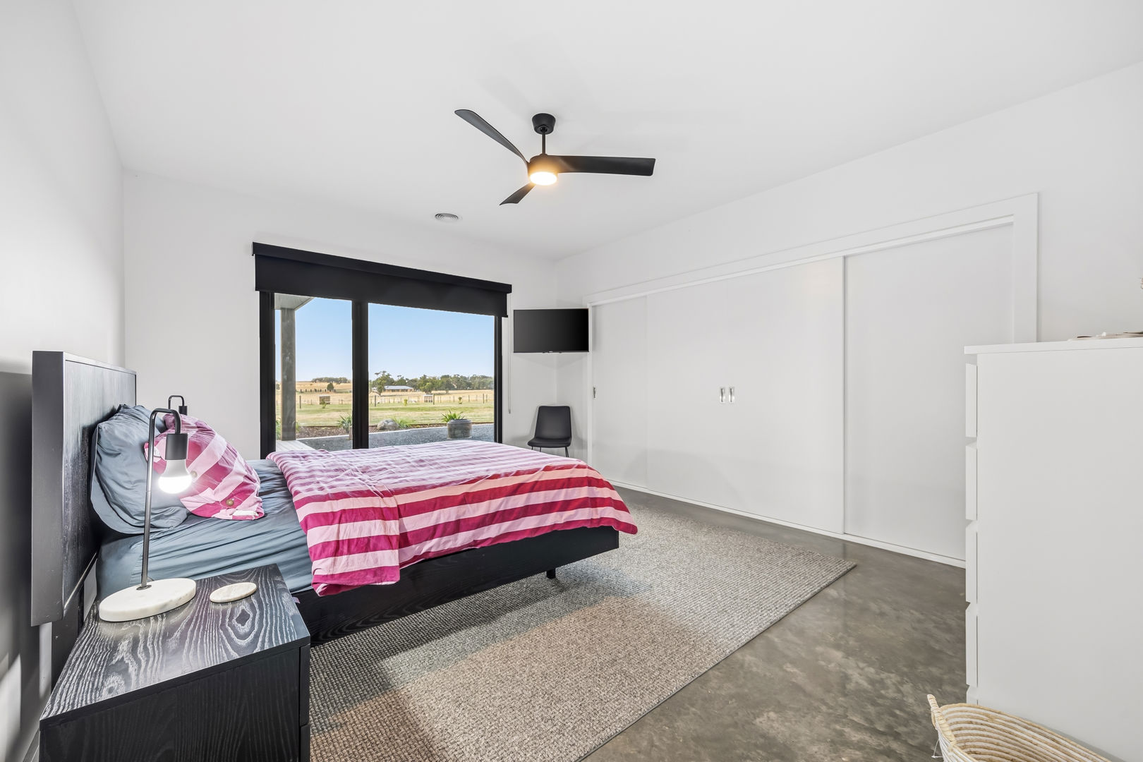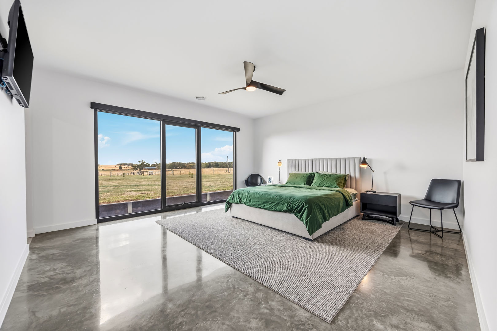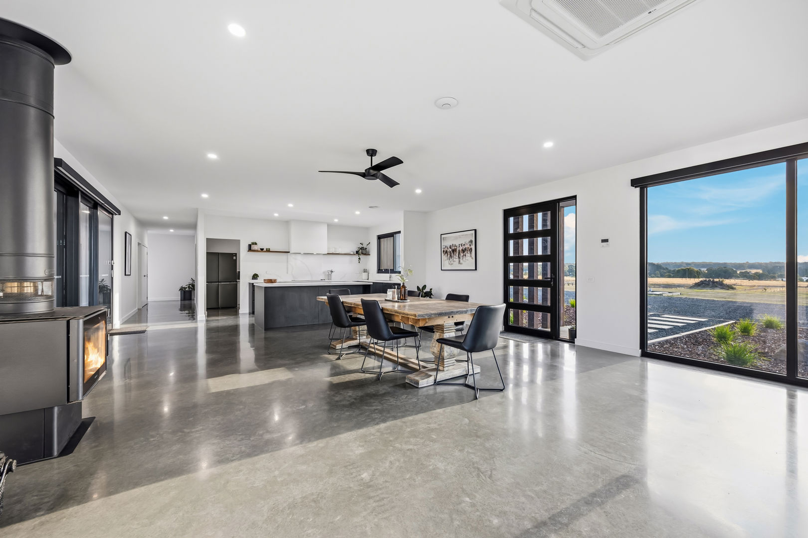 • Inside, the home boasts polished concrete flooring for durability and modern appeal, generously proportioned bedrooms filled with natural light, and an outstanding kitchen designed for both everyday living and entertaining. Double-glazed windows and doors throughout enhance insulation, ensuring year-round comfort, energy efficiency, and peaceful living.
