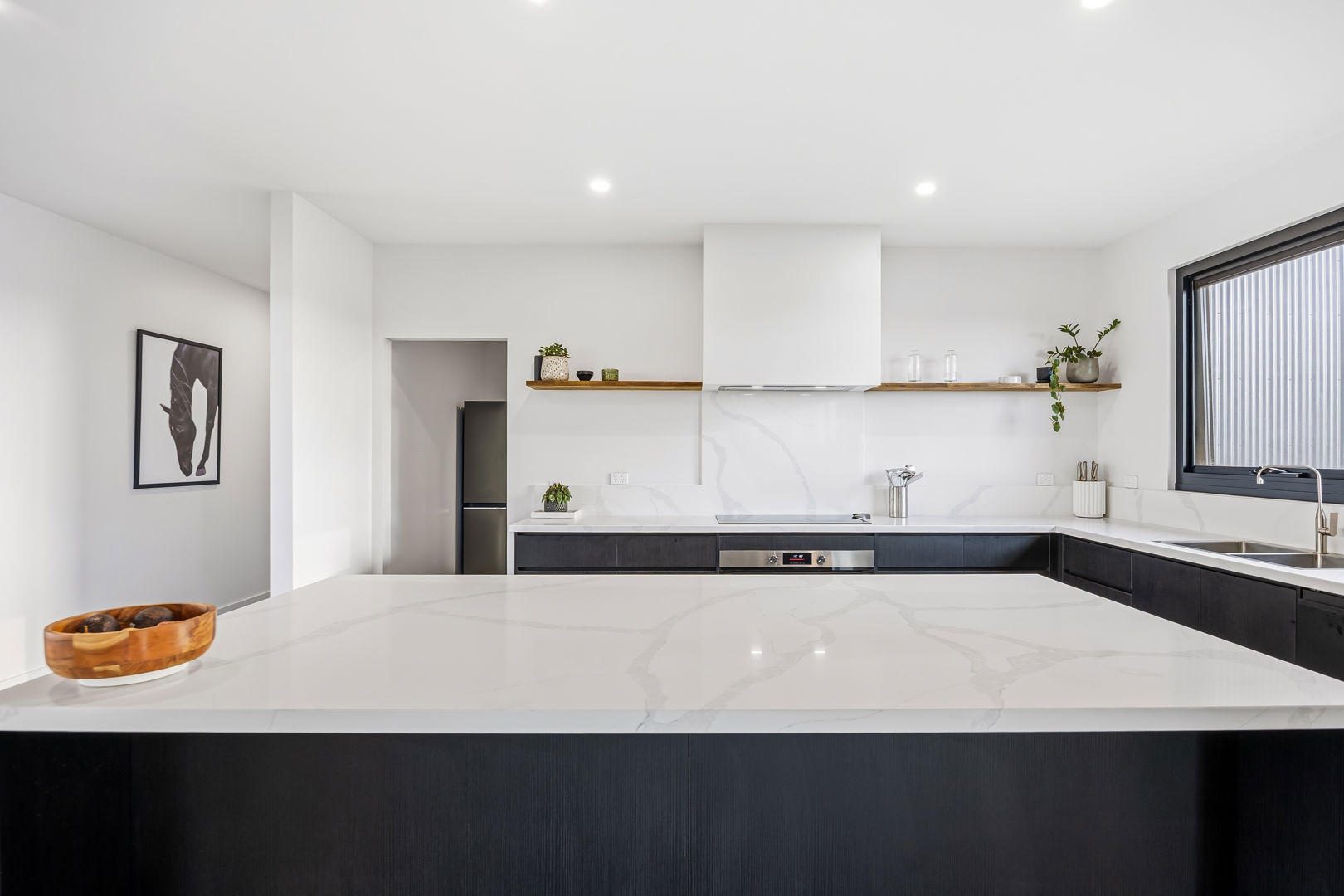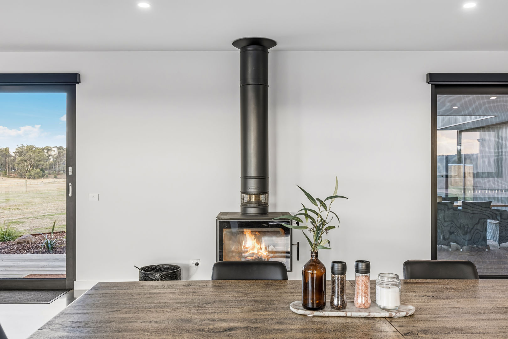 • The custom-built home has been thoughtfully positioned to capture sweeping countryside views, blending seamlessly with its surroundings. The design prioritises both style and practicality, creating a warm yet sophisticated rural retreat.