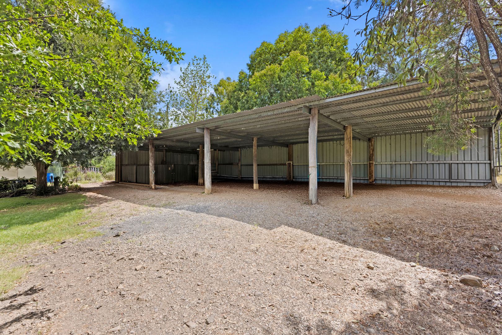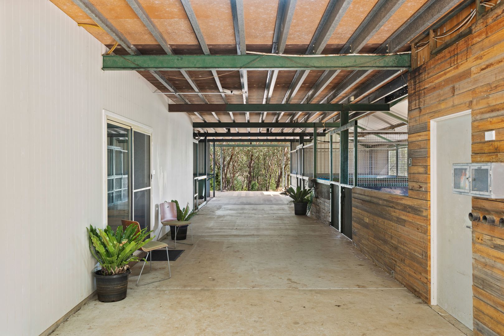 A generous 28m long by 4m wide central breezeway with concrete floor.