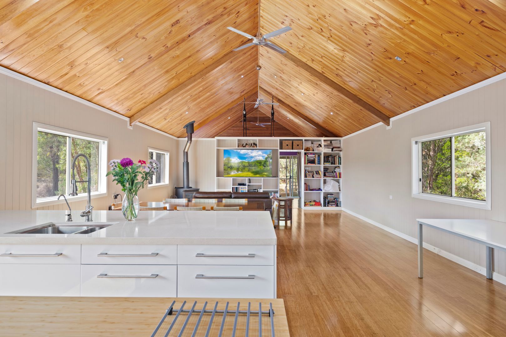 Very large garage with skillion roof adjacent to the main Homestead.