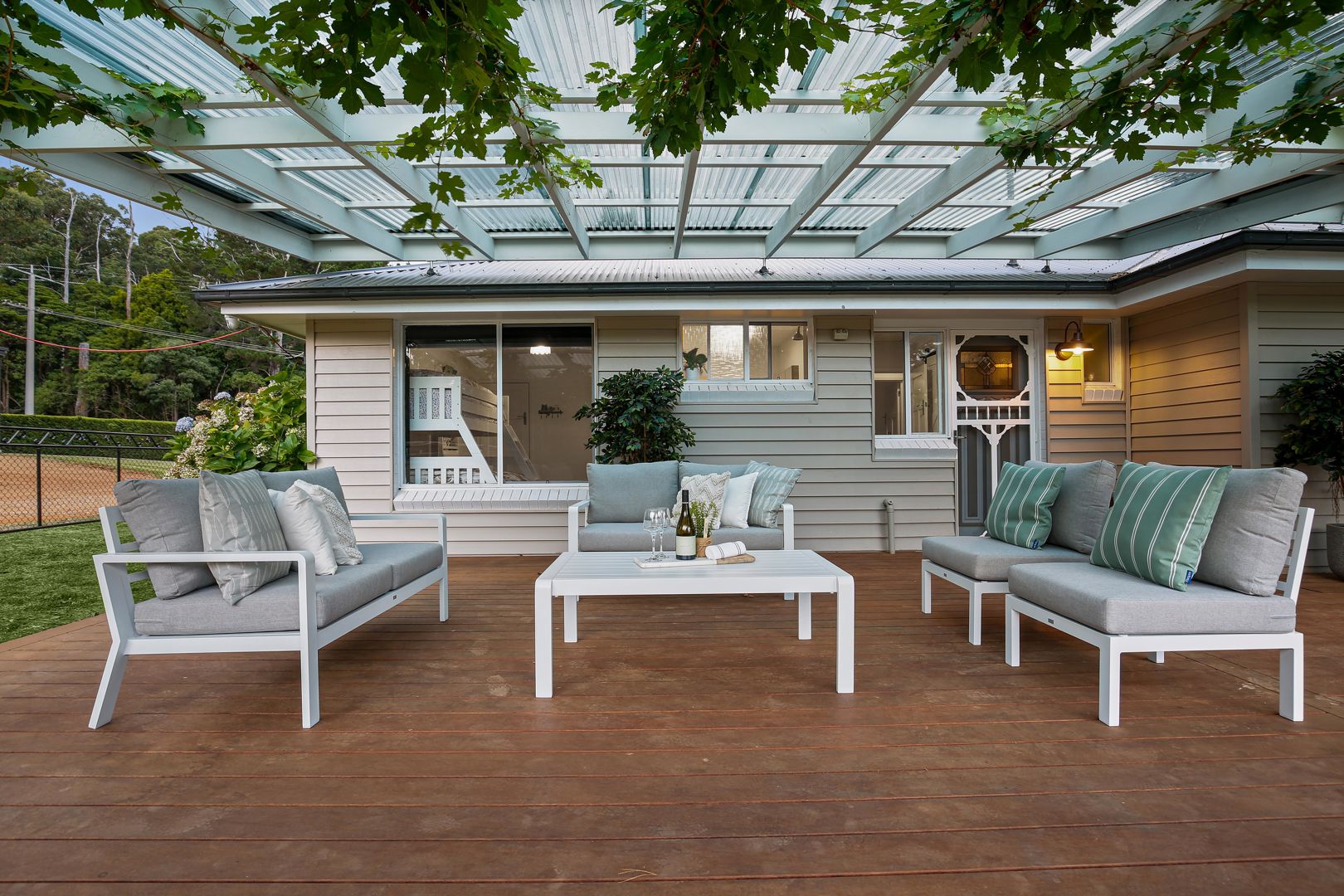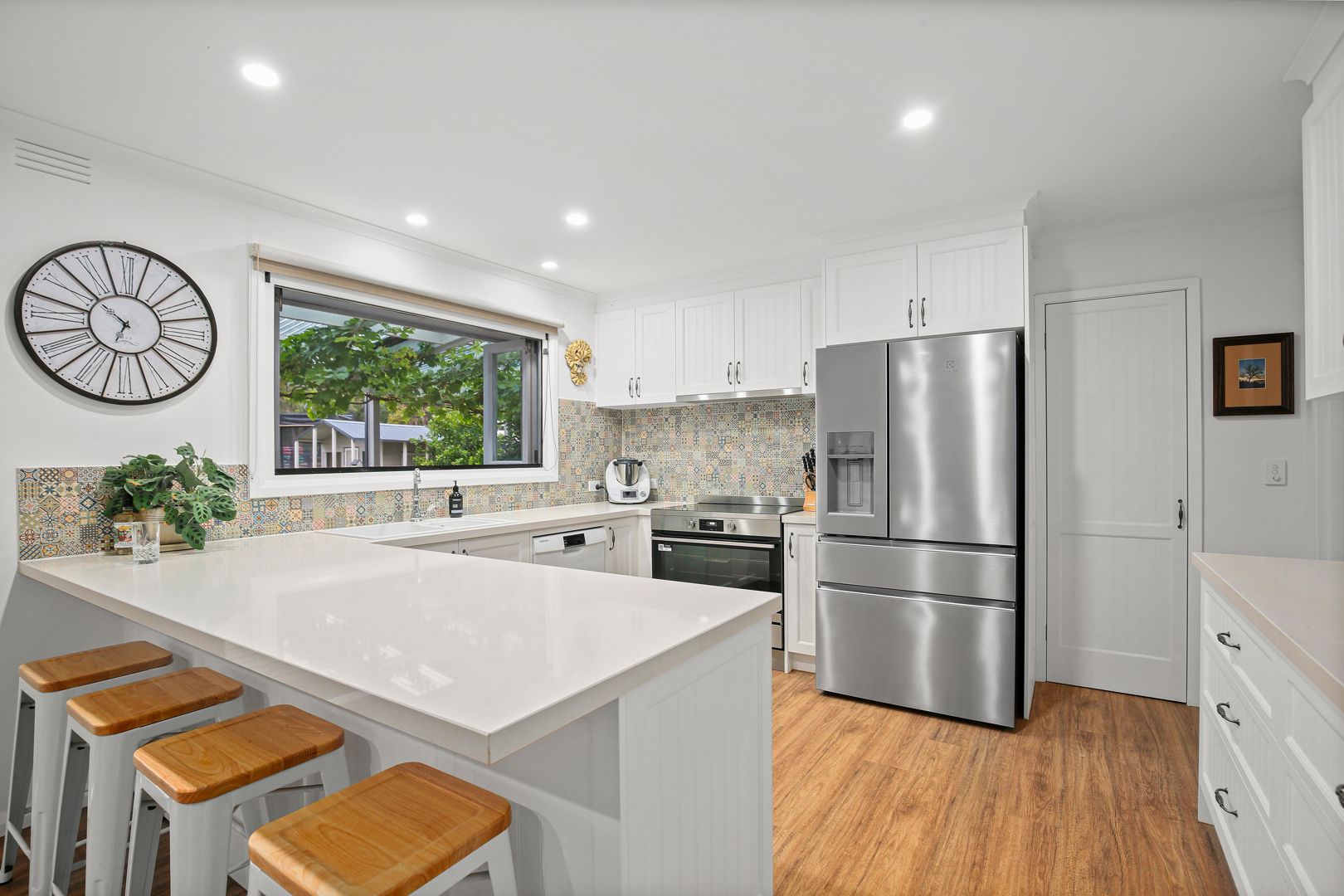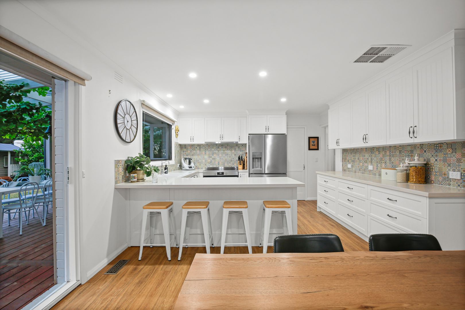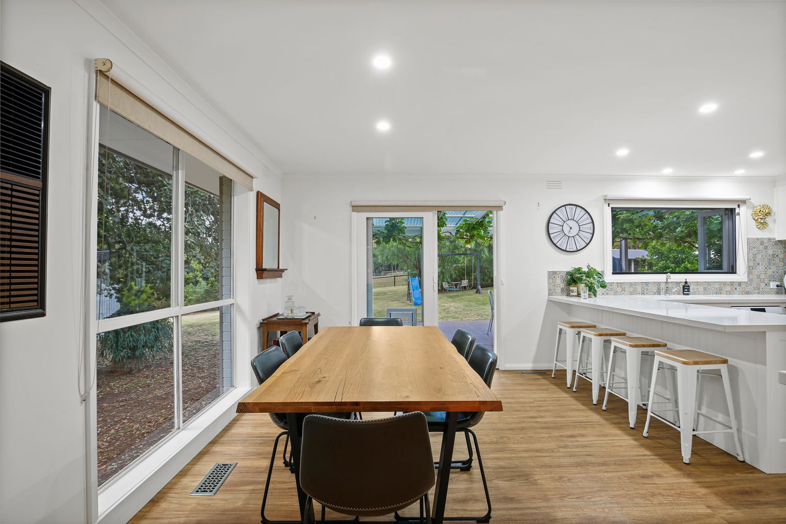 A refined renovation graces the family home, welcoming, relaxed, and light-filled, with northerly outlooks across the land. Blending country charm with modern finishes, it features timber floors, a wood fire, ducted heating, and evaporative cooling. A vine-wrapped entertaining deck extends the living space outdoors to the open lawn—perfect for play and bringing everyone together. Topped in sparkling stone, the elegant kitchen hosts a freestanding 900mm stove, dishwasher, patterned tiled splashbacks, and a walk-in pantry. Three bedrooms atop plush carpet share a bathroom styled with floor-to-ceiling tiles, a floating vanity, and a shower over bath, plus a second toilet and a laundry.