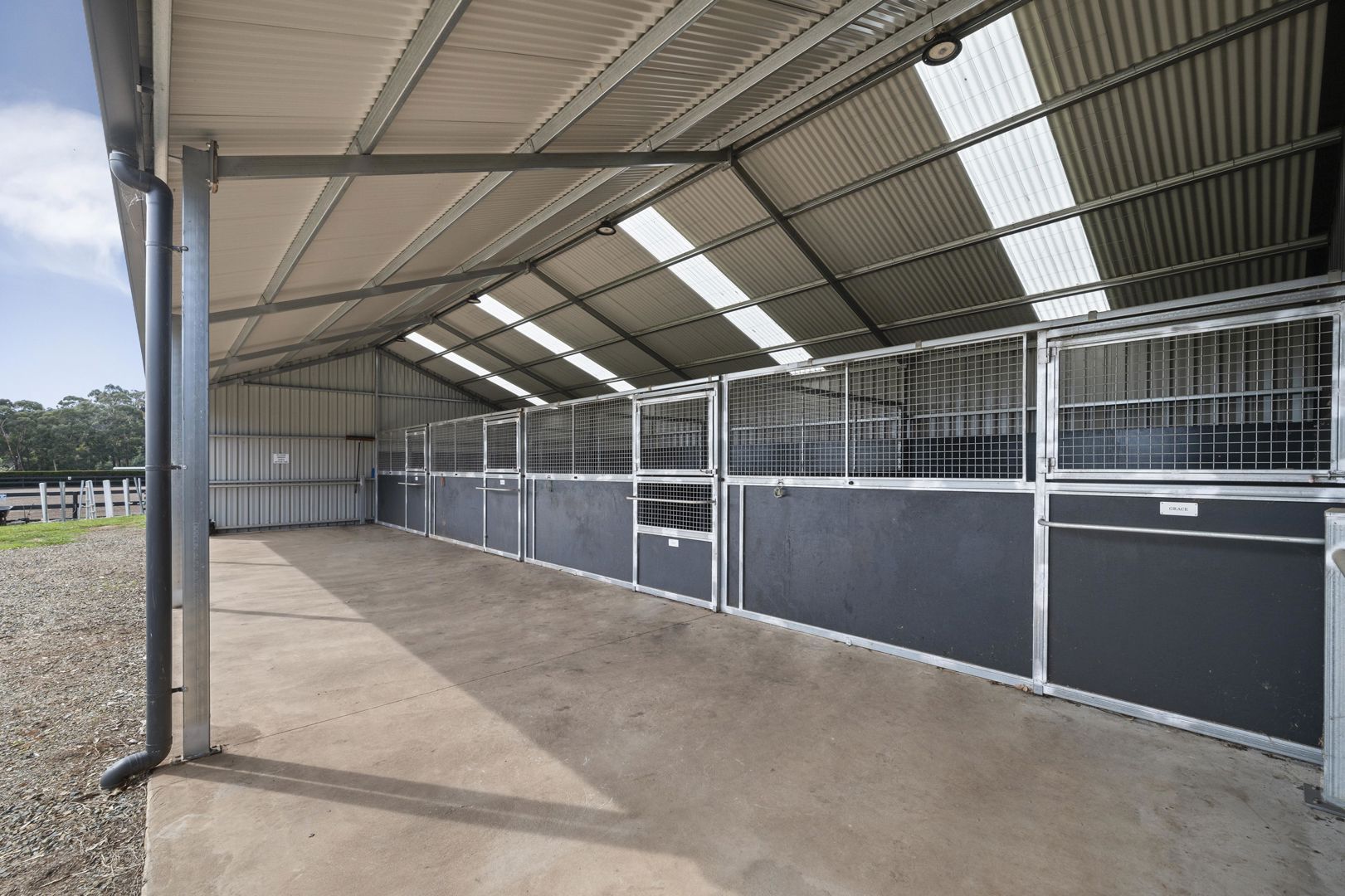 A double frontage enhances accessibility and separation of home and business, ideal not only for agistment or horse training, but for the self-employed tradesman. An all-weather, full size floodlit arena and paddocks support year-round riding, complemented by a large round yard, day yards, and purpose-built stabling with hot and cold water wash bays and an indoor tack bay. Multiple sheds and a substantial 15m x 18m high access machinery shed with concrete floor, separate plumbing and electrical switchboard accommodates floats, trucks, and equipment with ease, while CCTV covering the entire property and keypad/remote entry adds security and peace of mind. A second metered water supply offers further versatility.