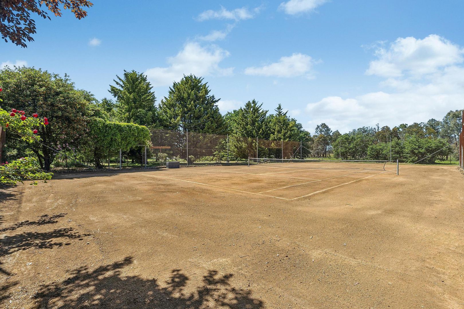 Outdoors, the property unfolds as both a private sanctuary and a sustainable rural enterprise. The fully irrigated landscaped grounds include a formal rose garden, a productive orchard, vegetable beds, a greenhouse, and a chicken run. Recreationally, enjoy a heated saltwater swimming pool, a full-sized tennis court and an underground wine cellar, culminating in esteemed country leisure.