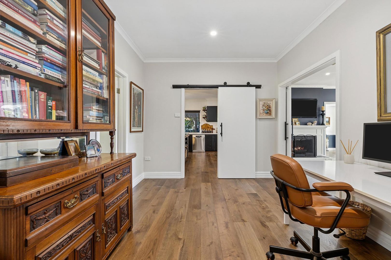 Multiple living zones create spaces for both formal entertaining and relaxed family gatherings, flowing effortlessly from elegant formal living and dining rooms to a generous open-plan family area. The modern-country kitchen, beautifully renovated, features quality appliances, a large timber island bench, an expansive walk-in pantry, and extensive workspace - perfectly suited for everyday living and effortless entertaining.