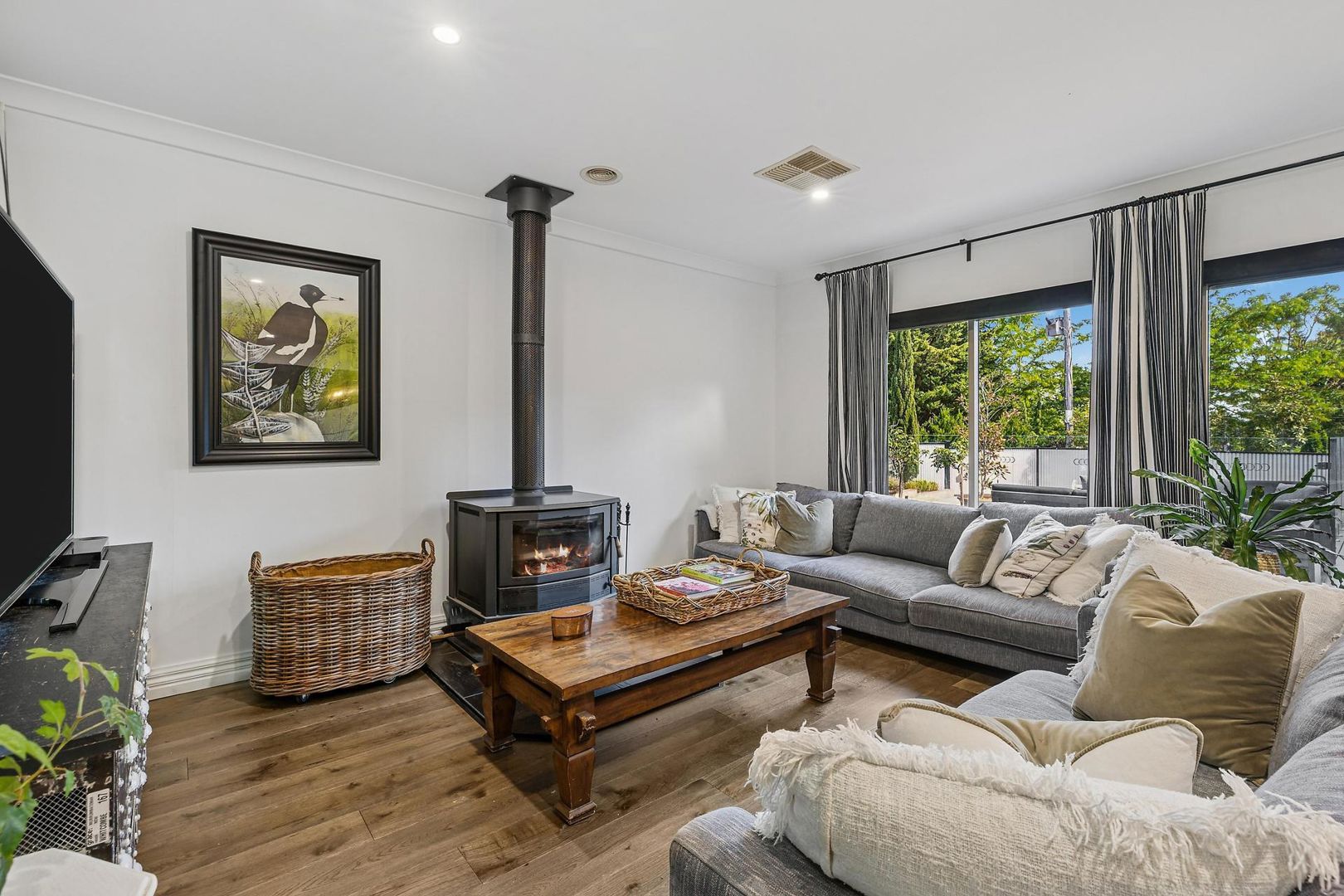 Recent enhancements have elevated the home throughout, including European oak flooring, new carpets, fresh paint, modern lighting, solar power and hot water systems, and a new roof, fascia, and gutters. Refreshed alfresco zones complement the home's outdoor appeal, while year-round comfort is assured with evaporative cooling, gas heating, and two fireplaces (one open, one slow-combustion).
