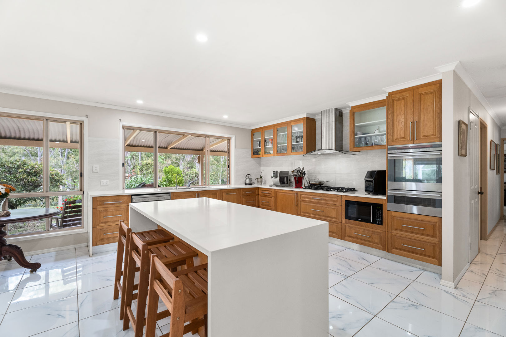 • Renovated kitchen featuring stone benchtops, waterfall island, gas cooktop & dishwasher