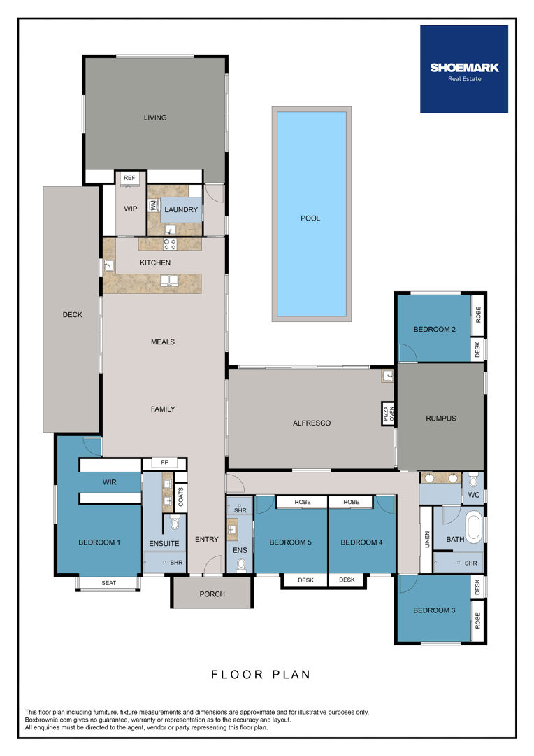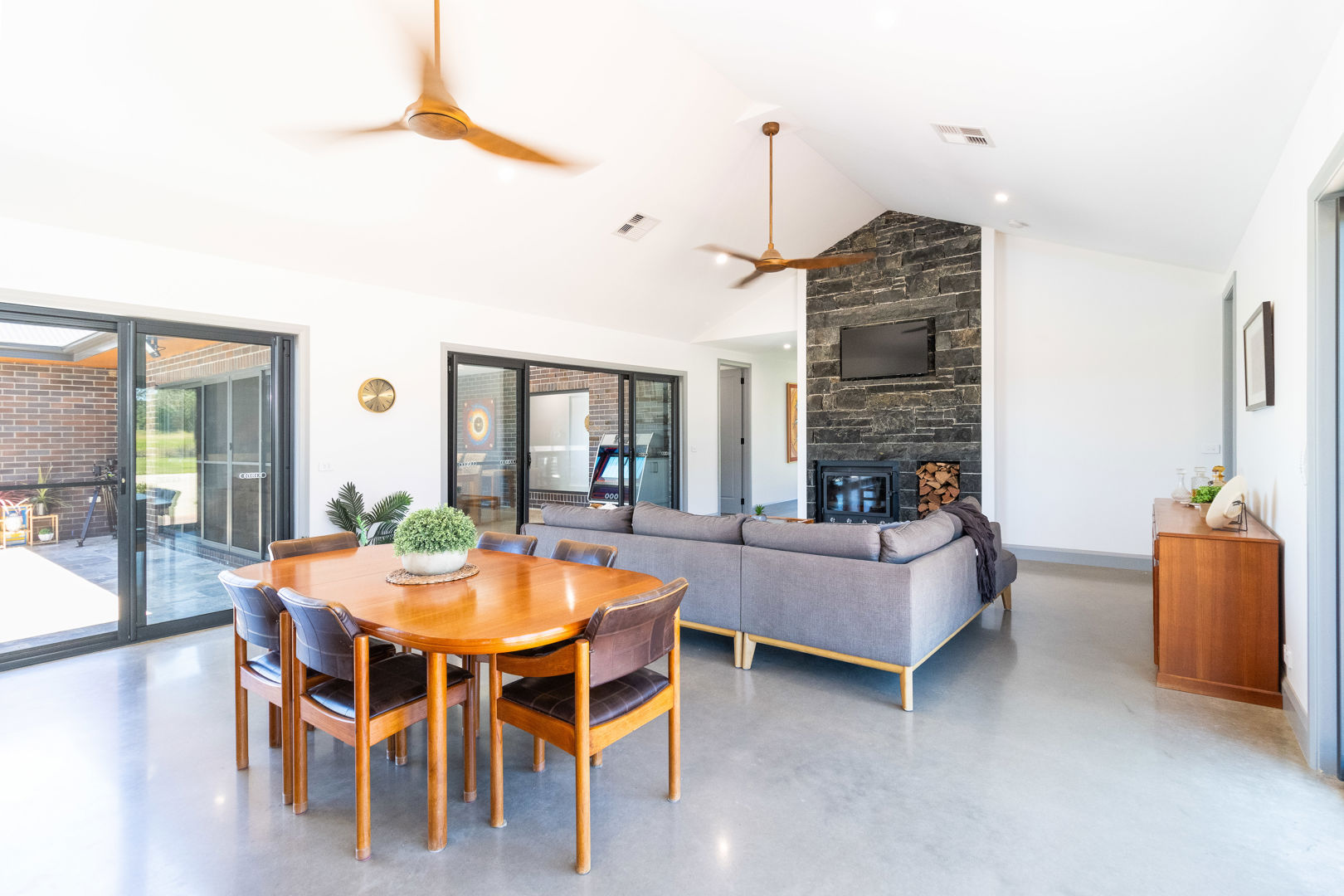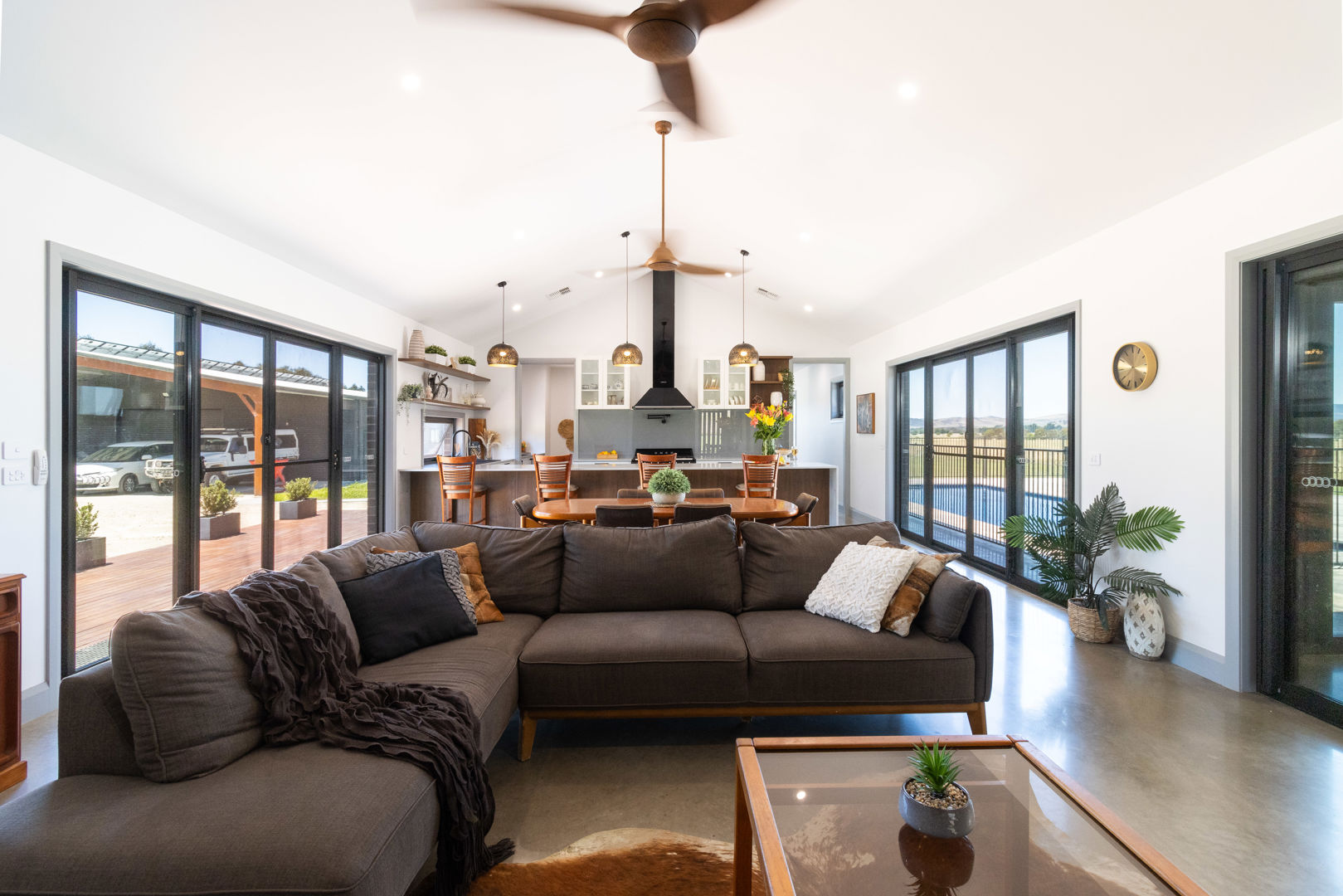 - 3 separate living spaces plus central covered alfresco