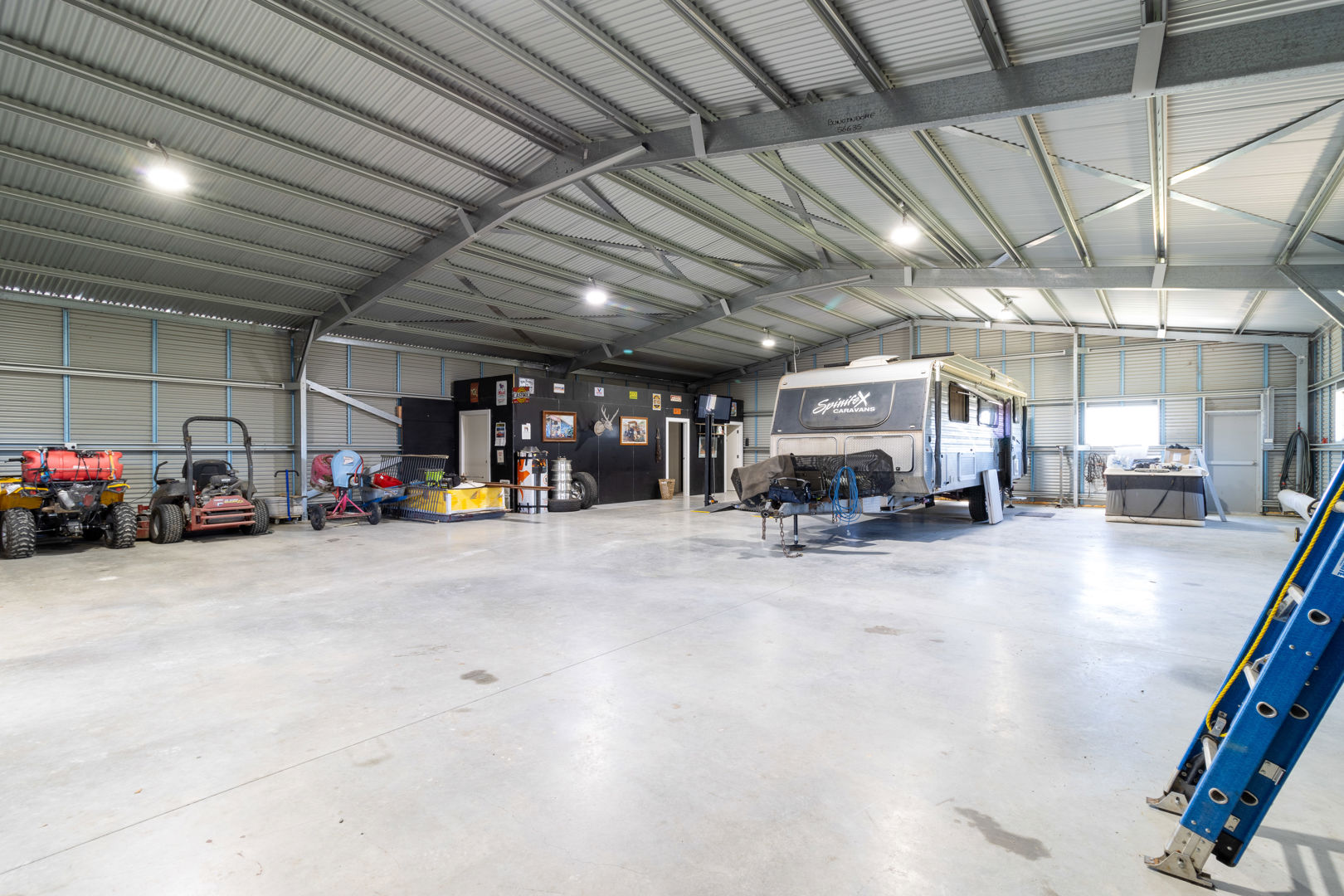 - Large shed (25x15m) with toilet, shower & carport