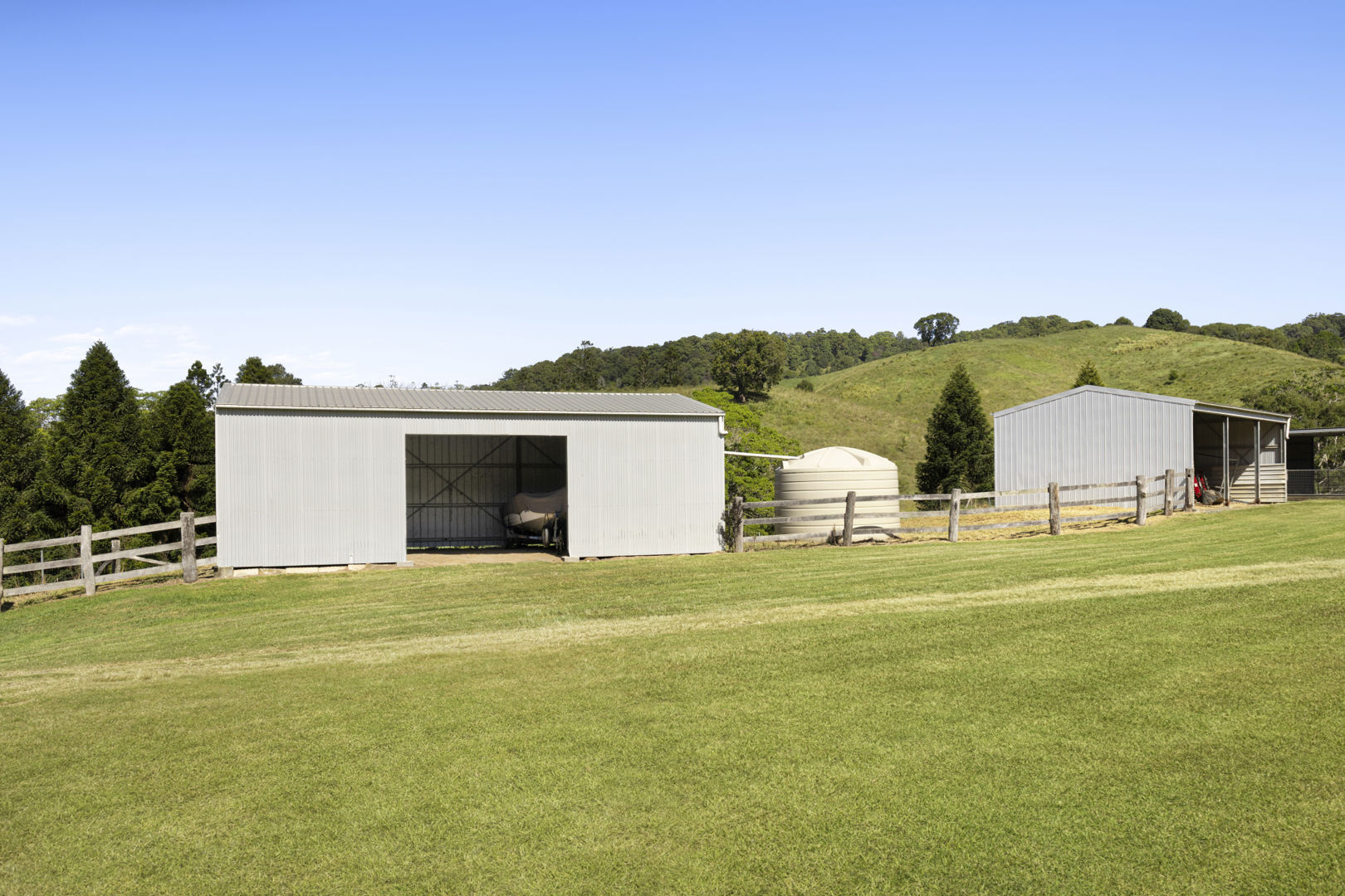 - Multiple sheds including machinery and float storage