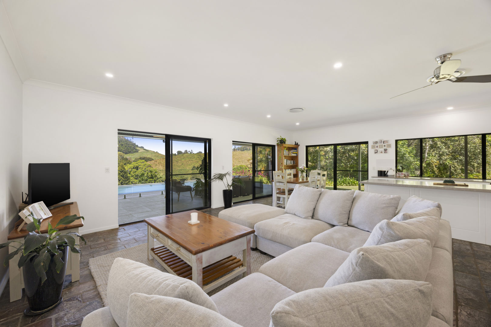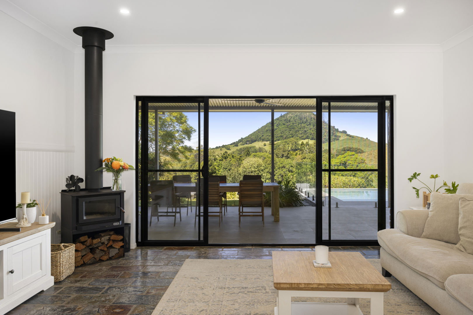 - Heated saltwater pool with hinterland views