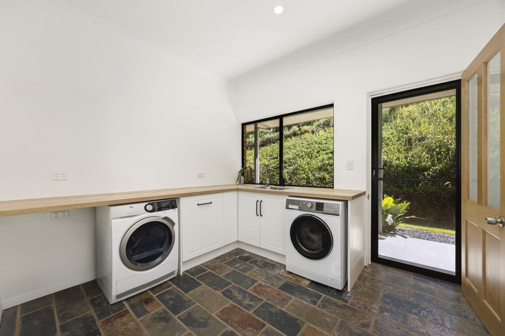- Stone island bench, walk-in pantry