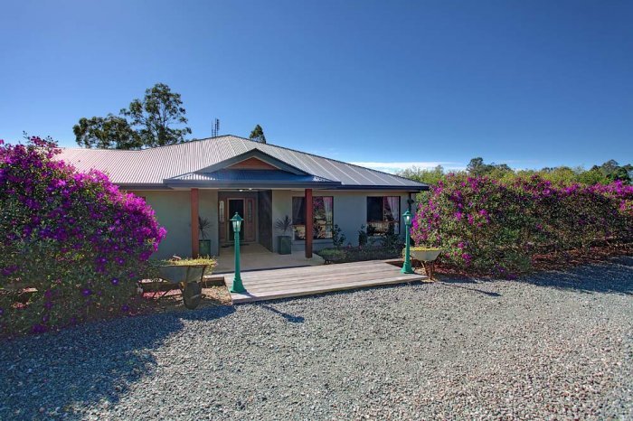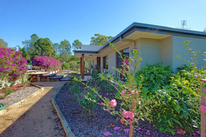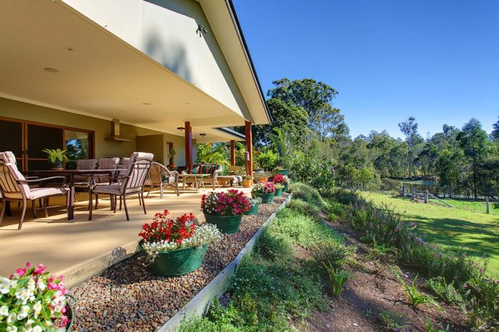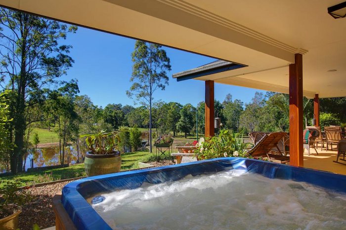 The huge undercover entertaining area overlooks beautiful views of paddocks and dams. Because of the huge size of the alfresco, you can have the option of entertaining with the BBQ or sitting, relaxing and reading a good book in the afternoon sun, there is enough room for both! Surrounded by gardens, this truly is your own piece of heaven and to top it off you have the spa to the left with little reading alcoves hidden in the cleared gardens. Choose from a shady spot under the palms or a sunny spot near the flowers or just go for a walk through the arched walkways that weave throughout the gardens.