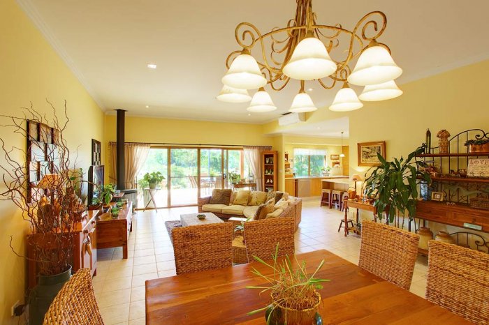 Are you looking for an animal friendly, out of town lifestyle yet love having friends over or organising social events? If so, then this property will suit you to a tee. Entering the property on a circular driveway with an electric fence and a guest parking area which is all surrounded by horses and gardens, you get the best of both worlds. When you reach the main entrance to the house you have gorgeous stone walls which lead into the main foyer. This creates a welcoming quality while still allowing guests to marvel at your home.
