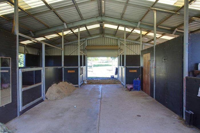 - One 4x4m stable and two large 5 x 4.5 stables with hot water, feed room and tack room