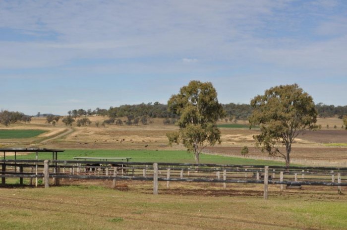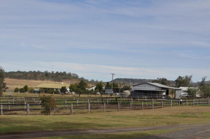 Runs from choice black soil creek flats with permanent creek rising to a shaded ridge. 14 acres Lucerne. 2 irrigated paddocks. One large dam, 2 bores - one domestic/stock bore and one irrigation bore 65 megalitre, 3000 GPH. Creek licence 36 megalitre - 1 megalitre per day supplies 6 spray lines from turkeys nest. Double frontage to Umbiram Creek. All good mixture of plain wire and netting fences.