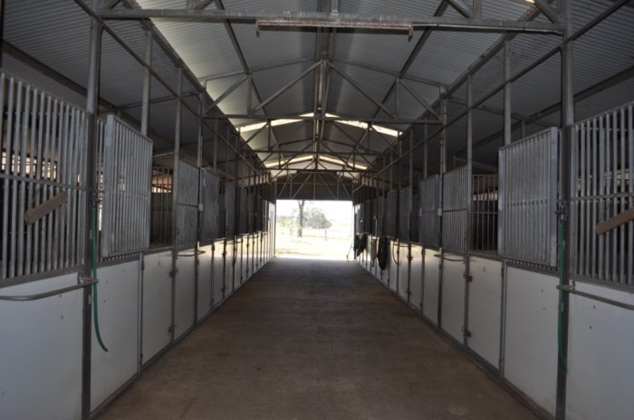 Excellent stable complex, feed and tack room in centre, 22 boxes, 14 yards, 6 horse electric walker. Open shed/machinery/hay/mare boxes. 20m x 20m workshop shed with concrete floor. 12m x 12m grain shed. 15 spelling paddocks, 4 stallion paddocks. 3 mare foaling down yards.