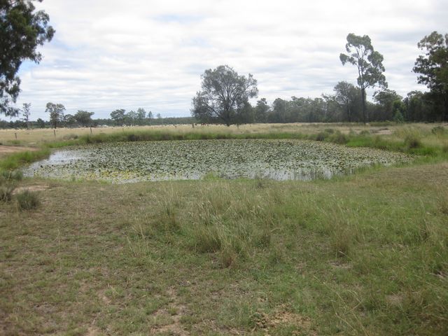 Fenced for horses and cattle, some land cleared and stick raked, rolling plains dotted by shade trees and 4 dams for stock, a bush shed, old timber stock yards ...
