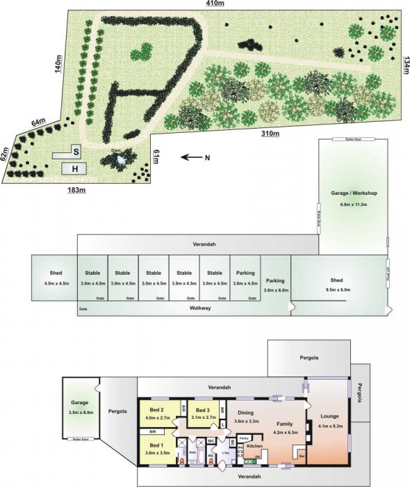 13 fully fenced paddocks with electric connections and spring waterto all paddocks. 6 stables plus holding and hay sheds. Work shop/garage. machinery shed.