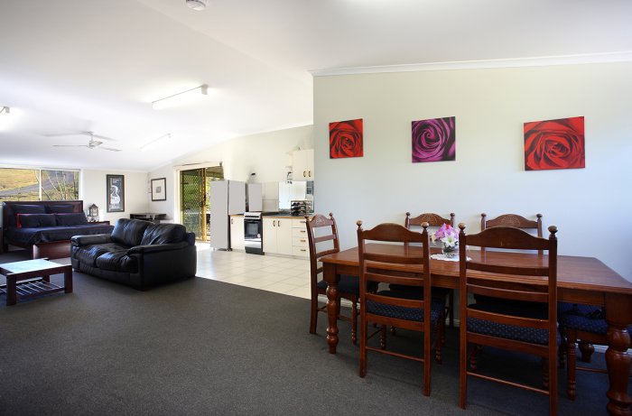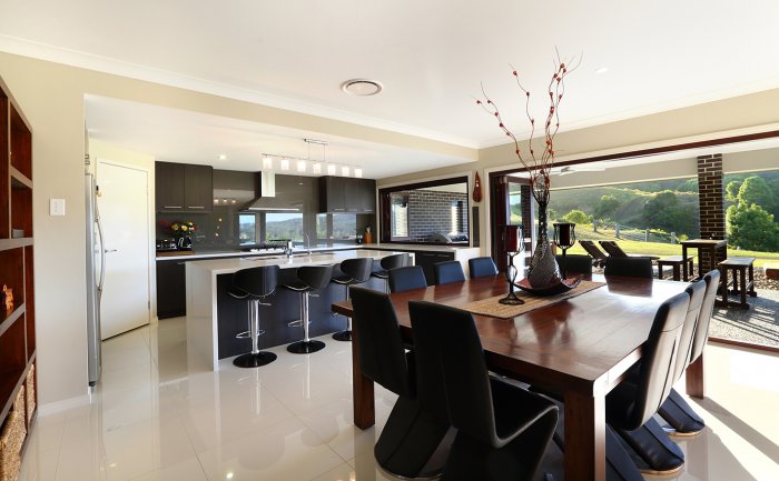 - Open plan living, dining and kitchen area with quality 600mm polished porcelain tiles throughout