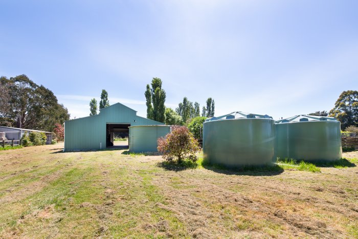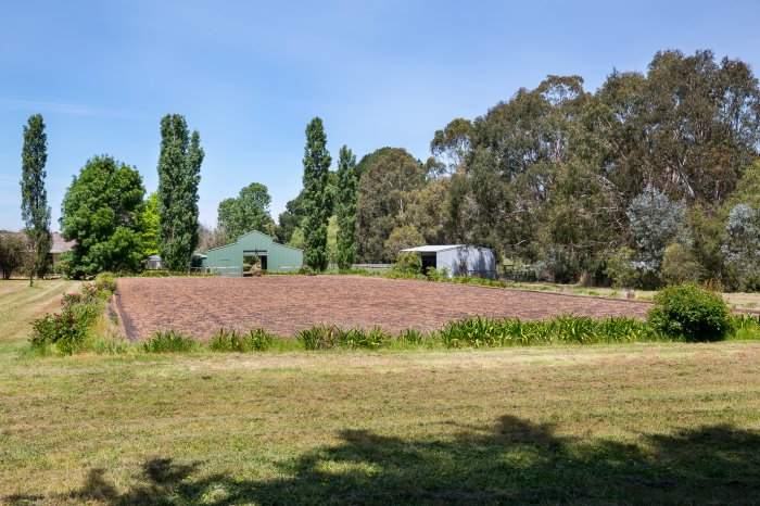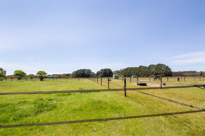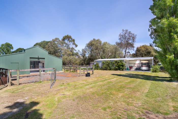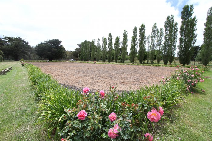 Full size dressage arena, barn complex 14 x 11 metres with 5 loose boxes, tack room, three day yards & a separate machinery shed which accommodates your float. Both structures have power and concrete floors. 8 paddocks, with six of these having horse guard fencing and water troughs.